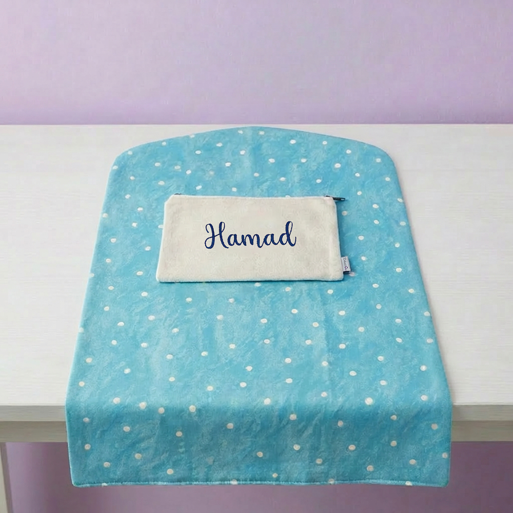 A special gift set for new born baby girls, set of personalized elephant and cotton stars blanket 80*100 cm, with box gift wrapping, name can be personalized in Arabic or English.