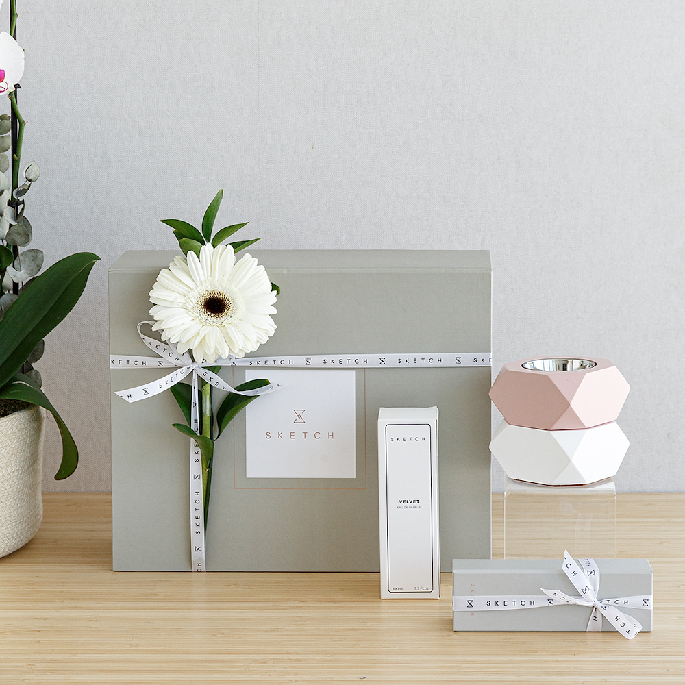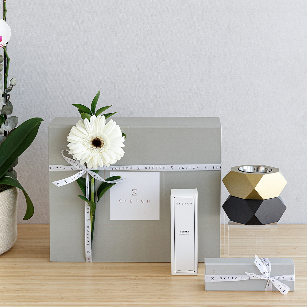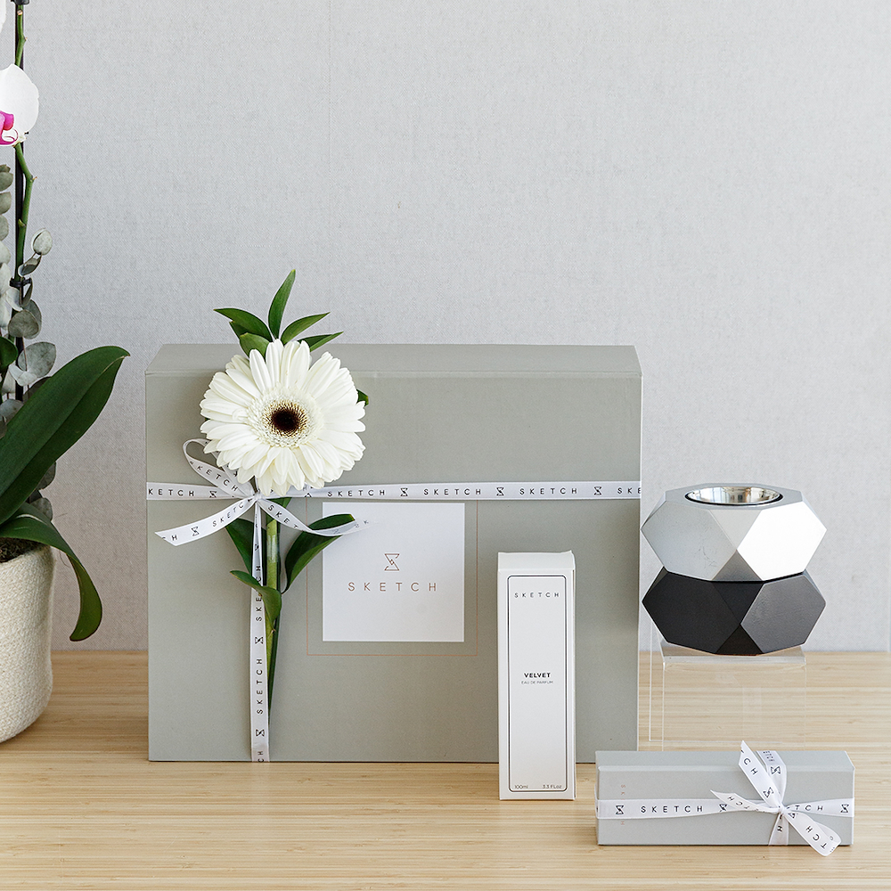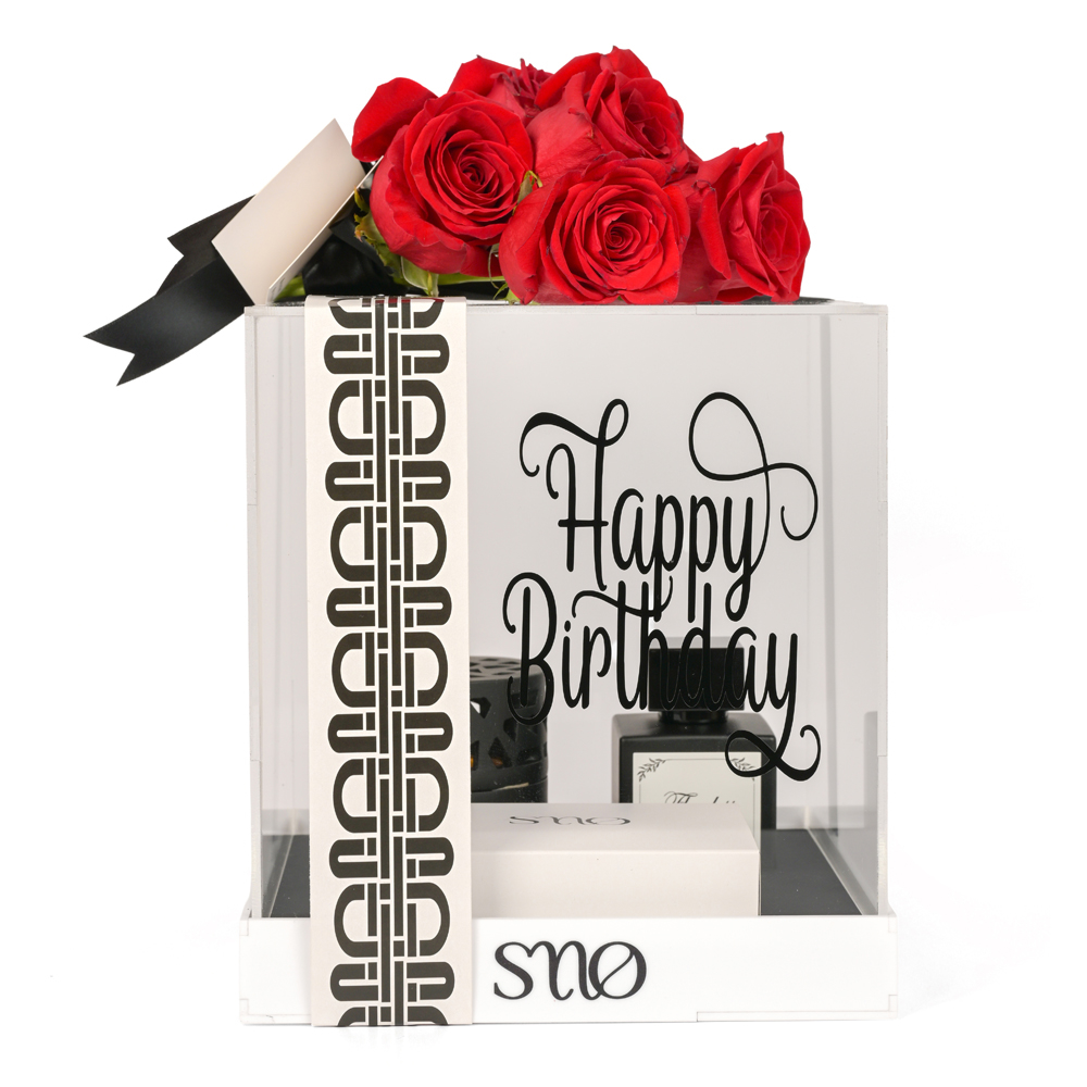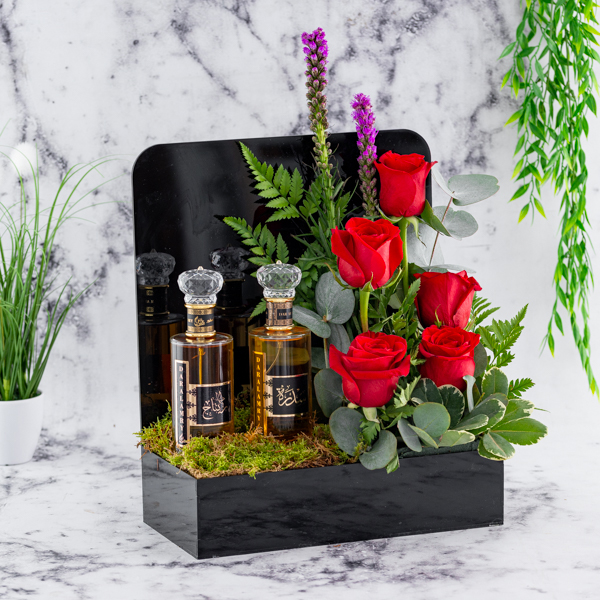 Acrylic stand with 2 perfume each perfume is 200 ml with flowers.
