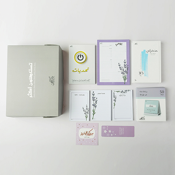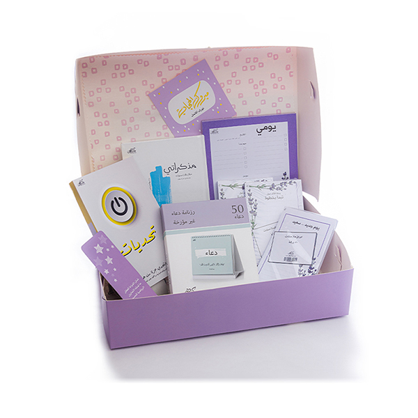 Gift Group Mabrok Alhigab The set contains 9 products Gift Wrapping – Gray Heart Tahadyat. Mothakarate. Note – Daily Purple A5. Note- Start with a step. Note- Task List. Note small-Happy day-. Quatations - Dua. Congratulations card - congratulations. hijab - purple. Bookmark - Tamassalul Qiraah.