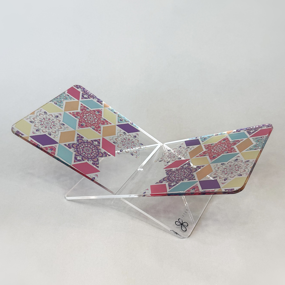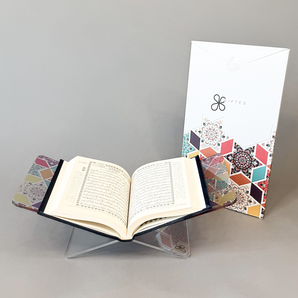 A lightweight portable Quran stand made from high-quality acrylic. Designed for easy use, it opens and folds effortlessly, making it suitable for home or travel. Provides a stable and comfortable support for reading the Quran. Available in 2 beautiful designs with a clean and modern look. Perfect for daily use, Ramadan, or as a thoughtful gift. Note: the product does not include the Quran.
