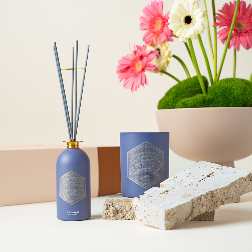 A rose-scented gift set consisting of a diffuser and a candle in our special gift box for Mother's Day. Note: the flowers are not included.