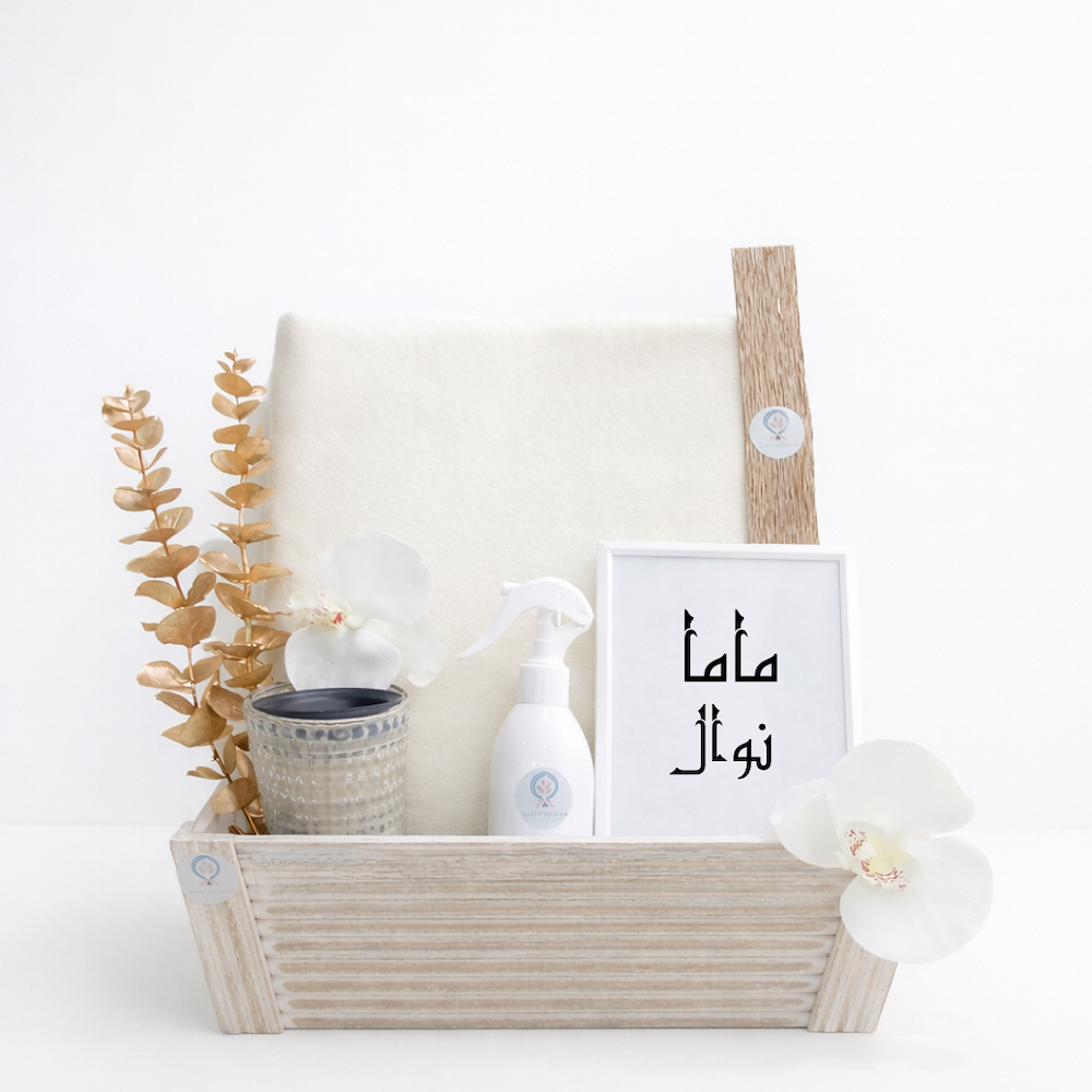 This special gift contains a makeup bag and brushes, a hair brush, a headband, and an eye mask with perfume with special wrapping in a wooden box. The name can be printed on the box.