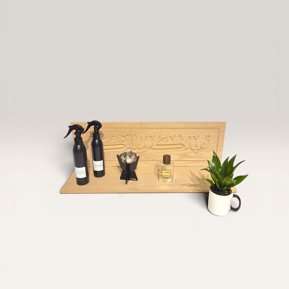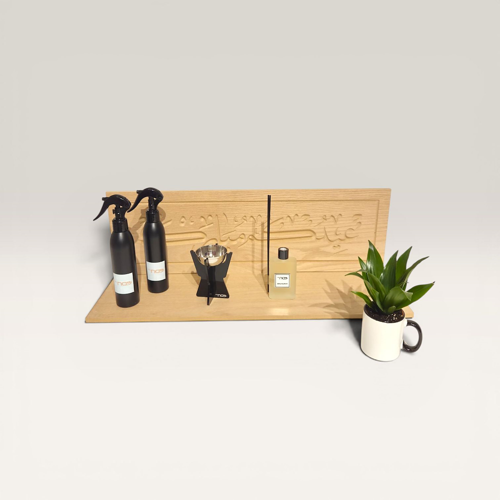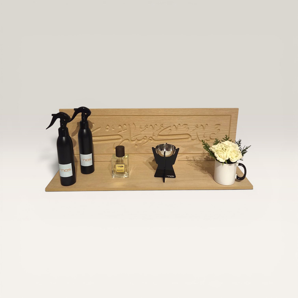 A desk phone and pin holder comes with a candle, mirror and baby roses bouquet.