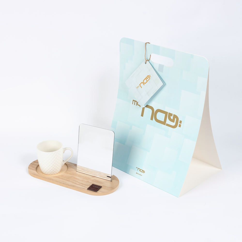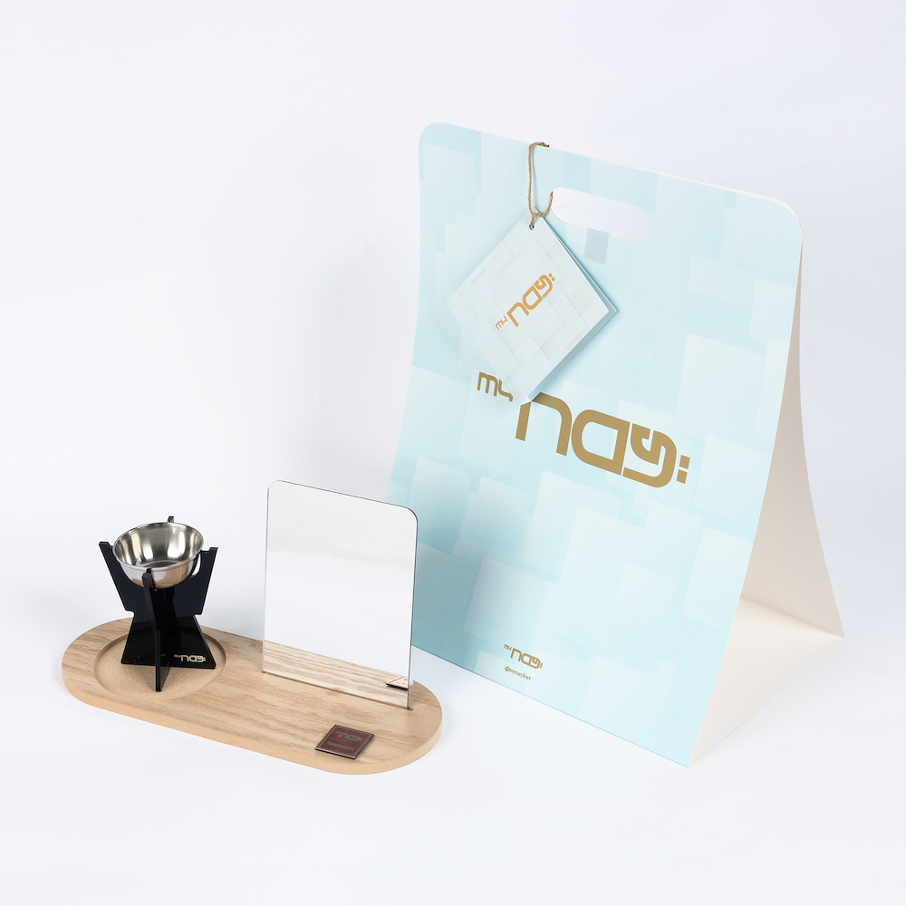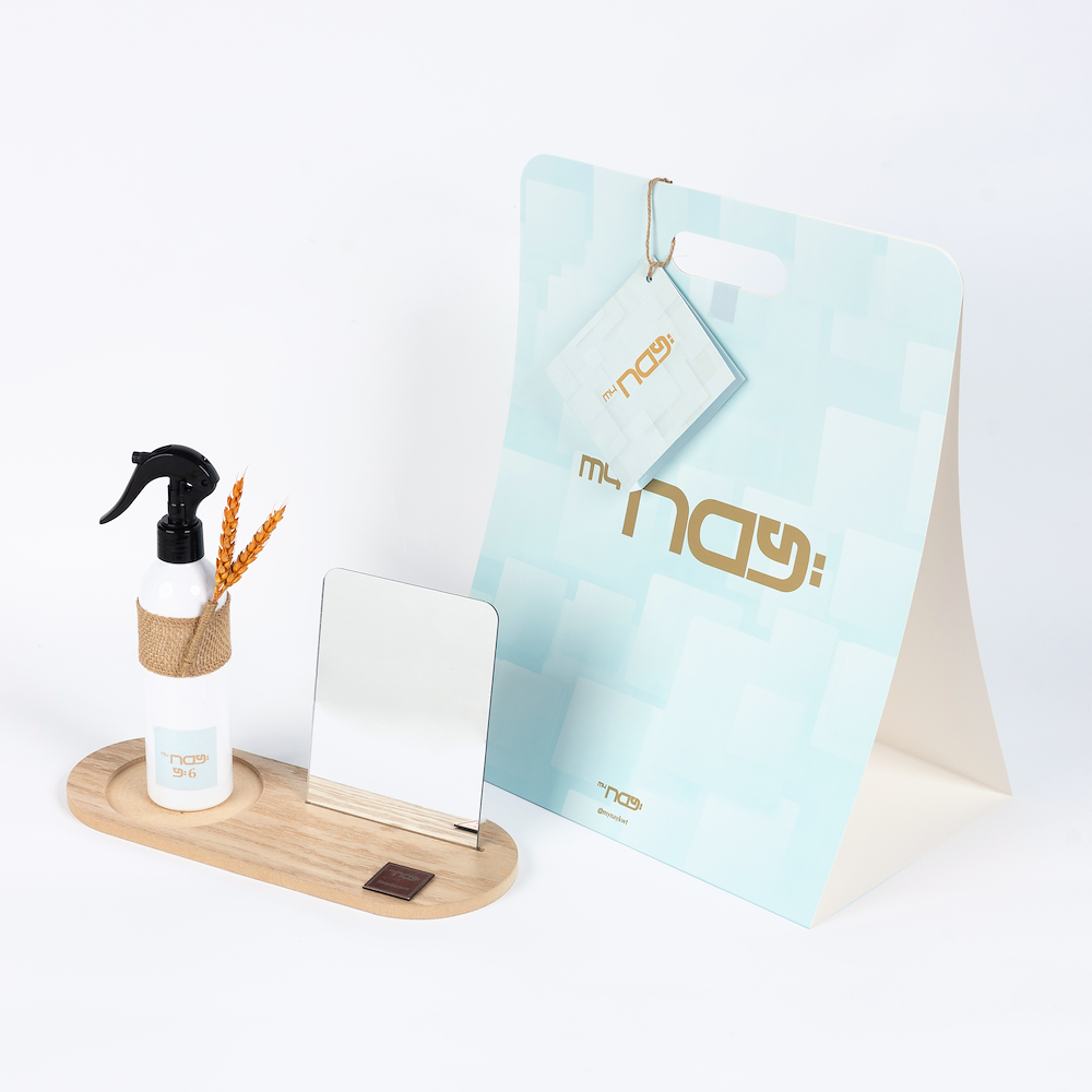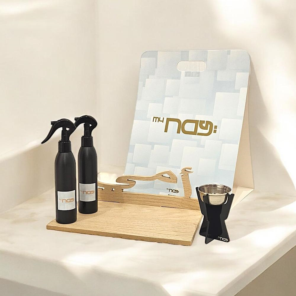 A wooden stand for Mother's Day with a home spray and an incense burner.