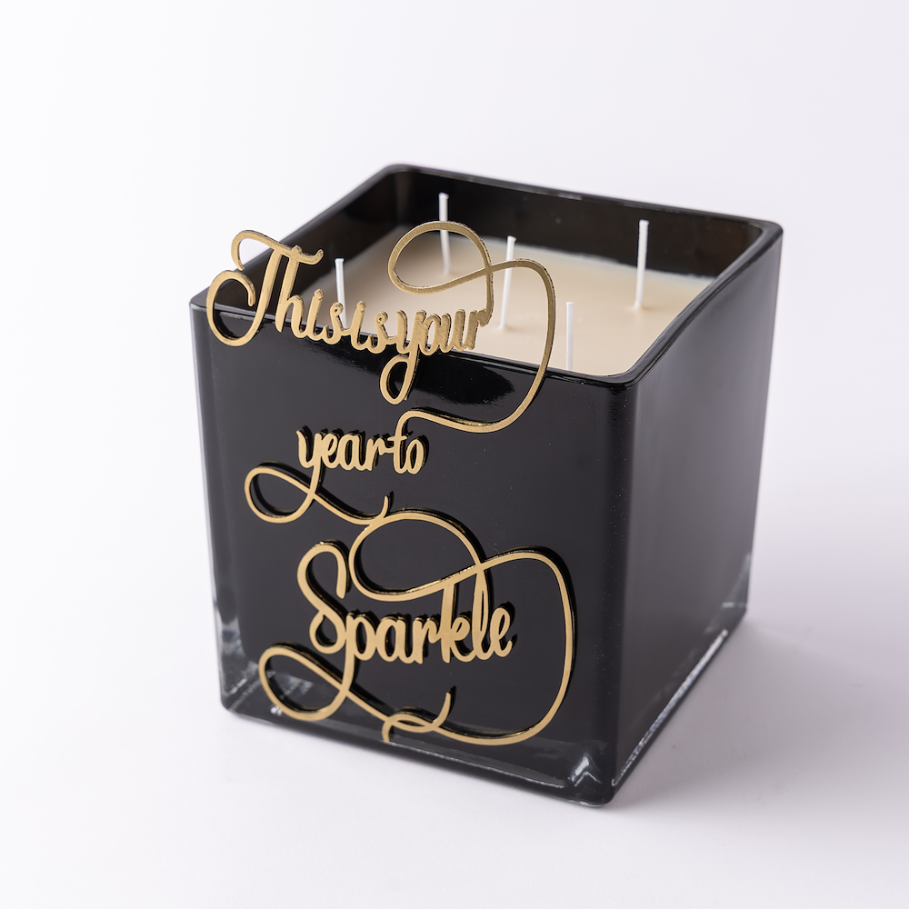 A large scented candle featuring “This is your year to sparkle”, candle weight: 1900g.