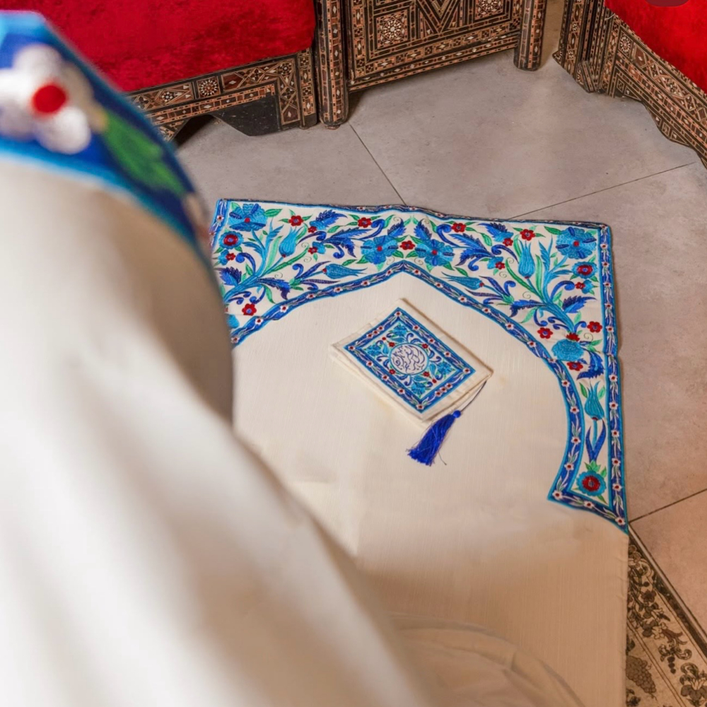 Because prayer holds a sacred status, and a gift carries a deeper meaning. The “Maqam” gift set includes 6 carefully selected items: - A thick, premium embroidered prayer mat, featuring Qeshani’s signature design. - An elegant and comfortable prayer garment, - A Quran cover. - The Holy Quran. - A perfume sprayer infused with Damascene jasmine and white musk. - A luxurious bag adorned with Qeshani patterns. - A premium gift card. - A Ramadan timetable. A refined prayer gift, presented with a spirit of reverence, tranquility, and timeless elegance.