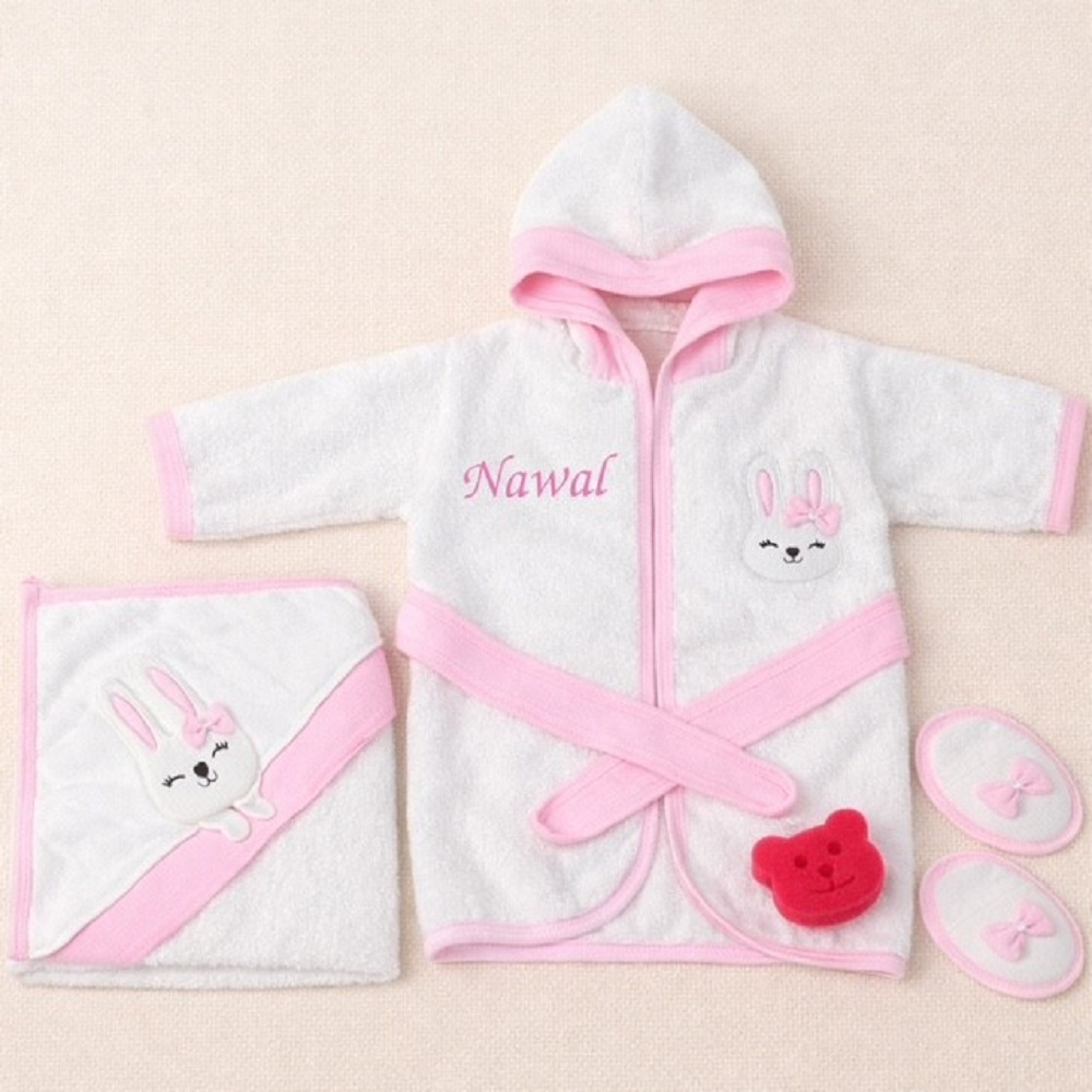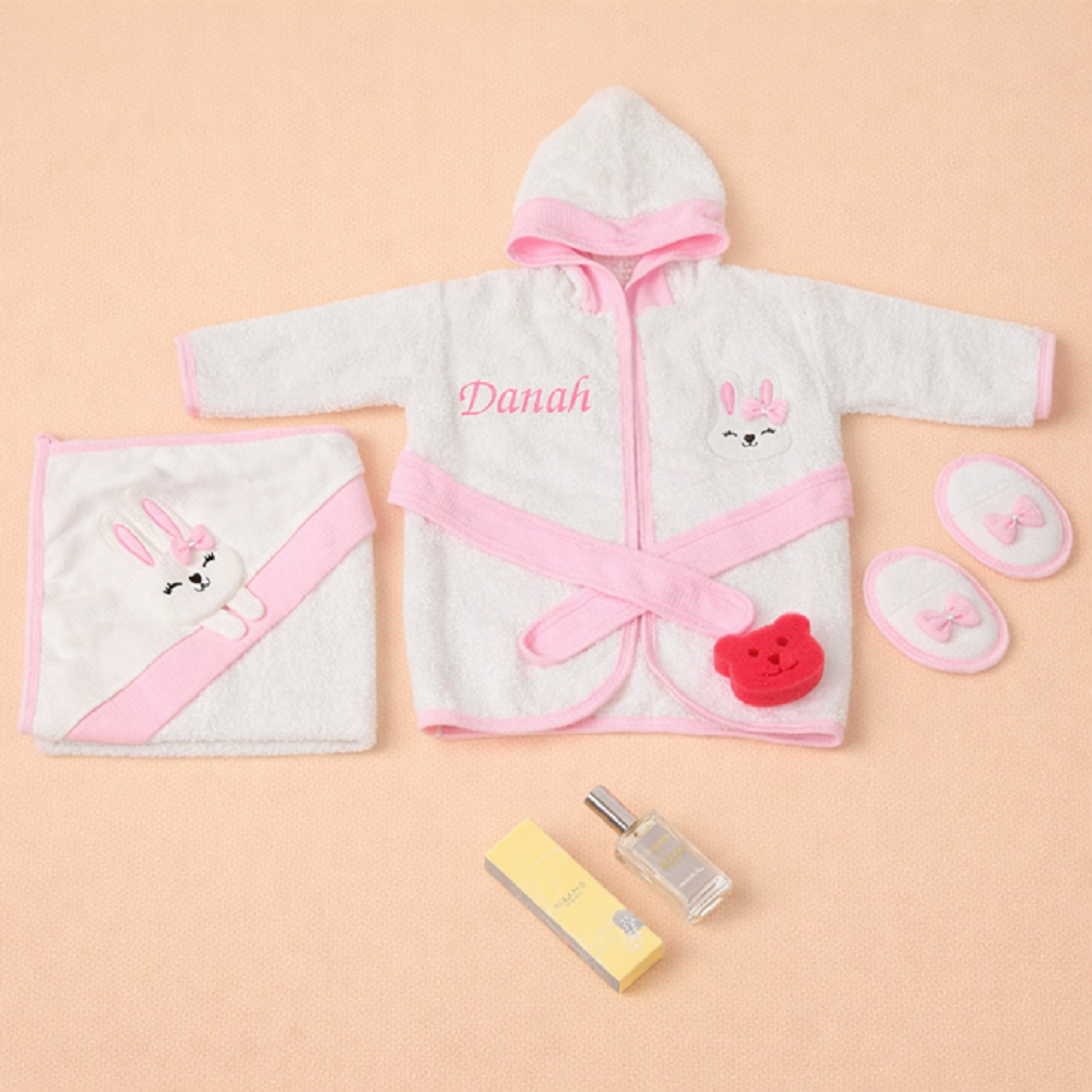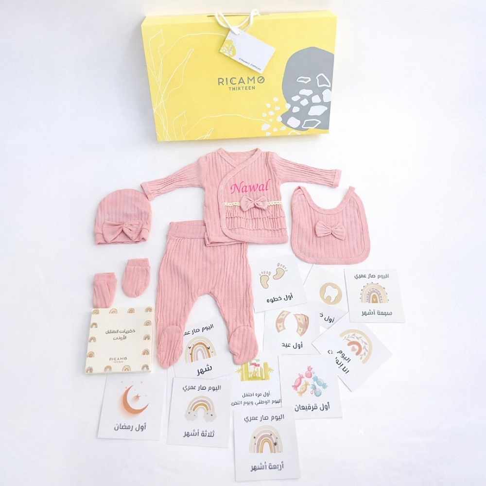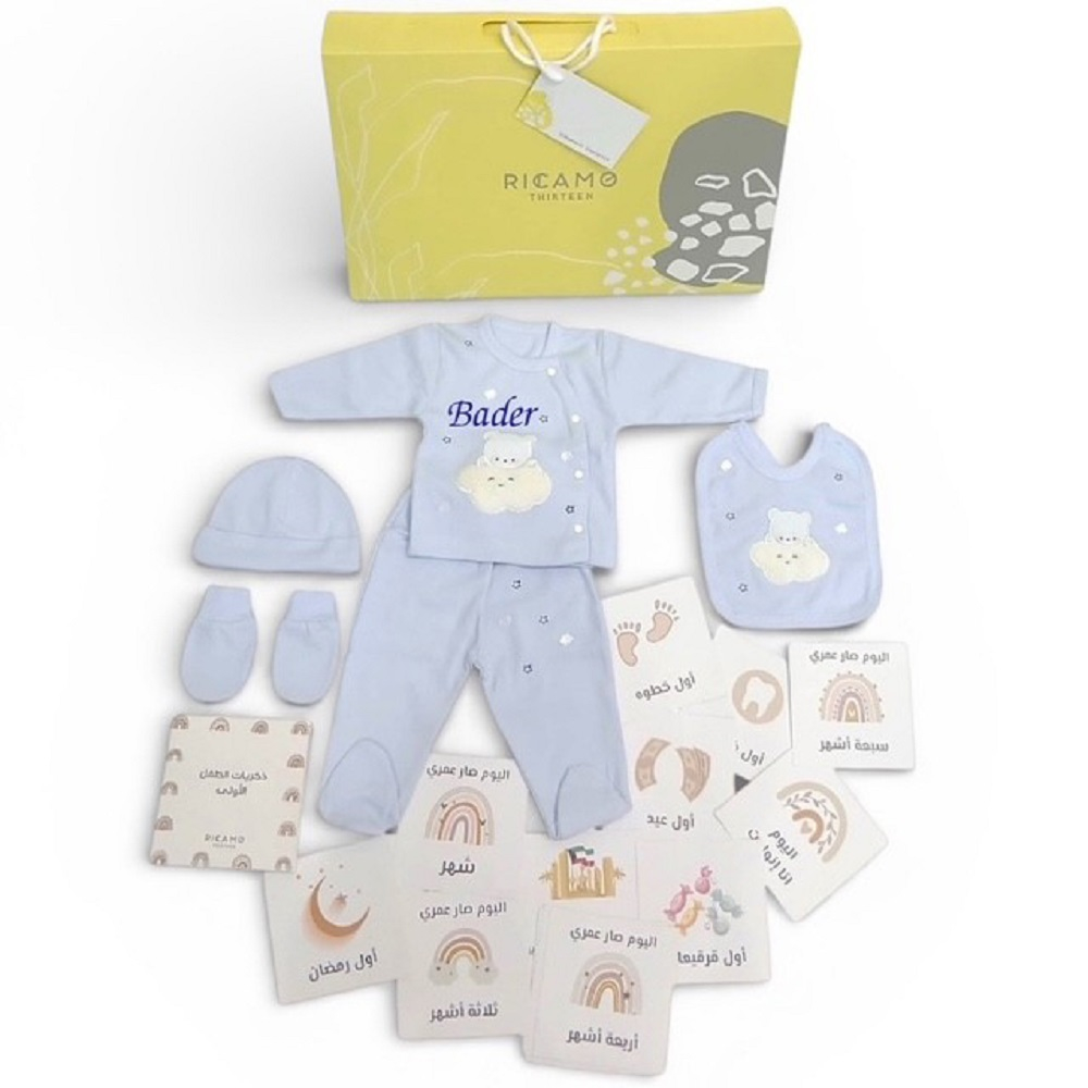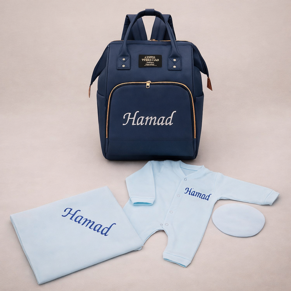 This special gift set contains a blanket and a mug in a wooden tray. Name embroidery on the blanket can be in English or Arabic.