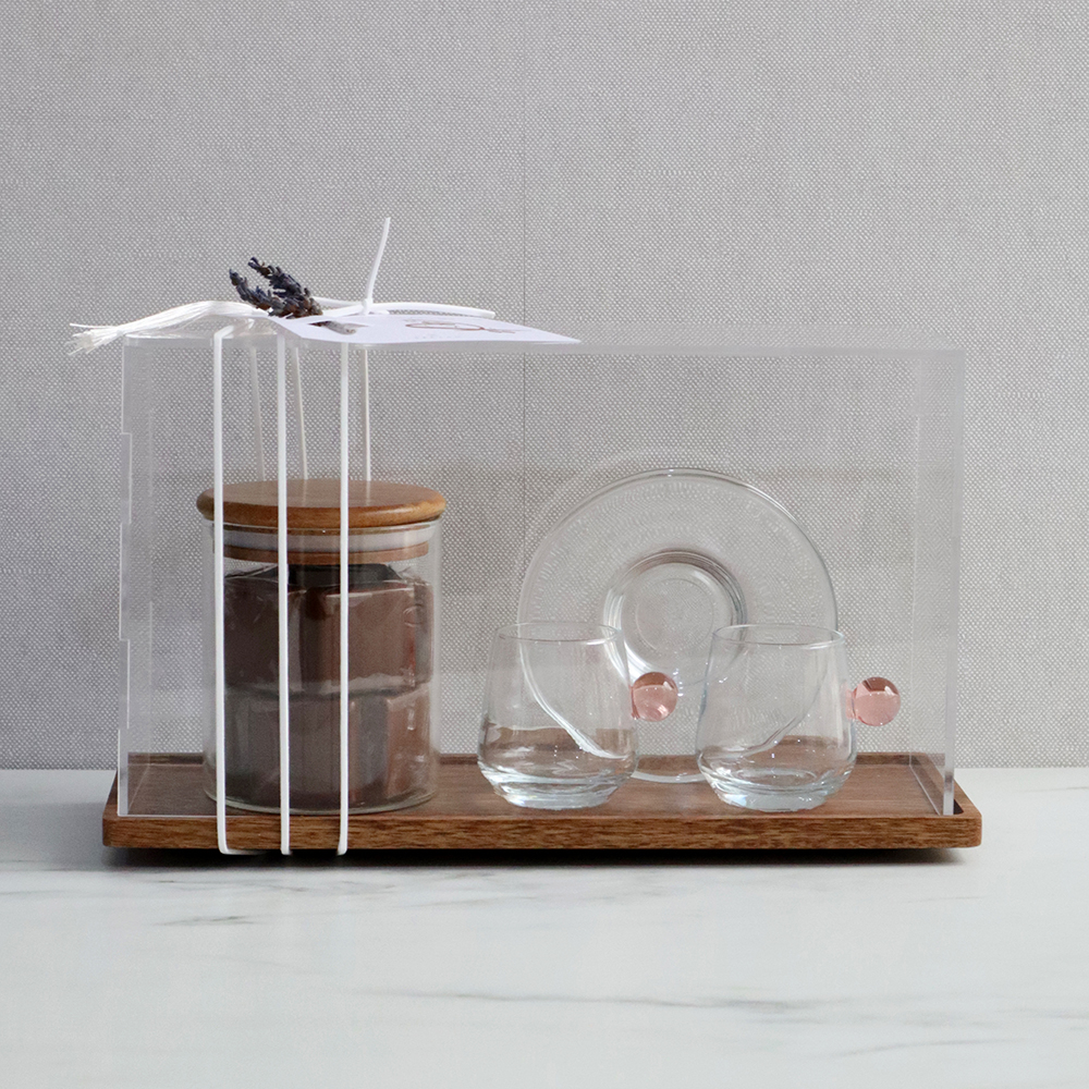 Thermos to go cup comes in a gift bag wrapped with a flower and card.