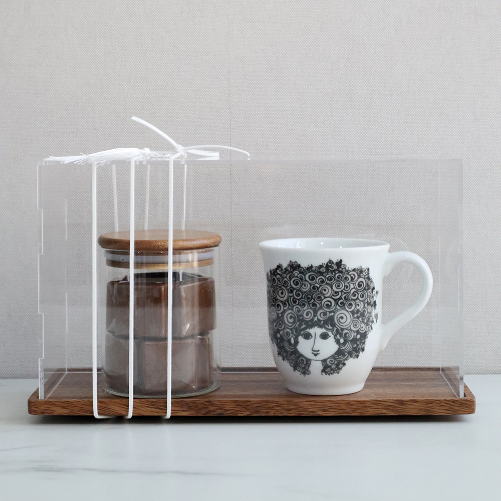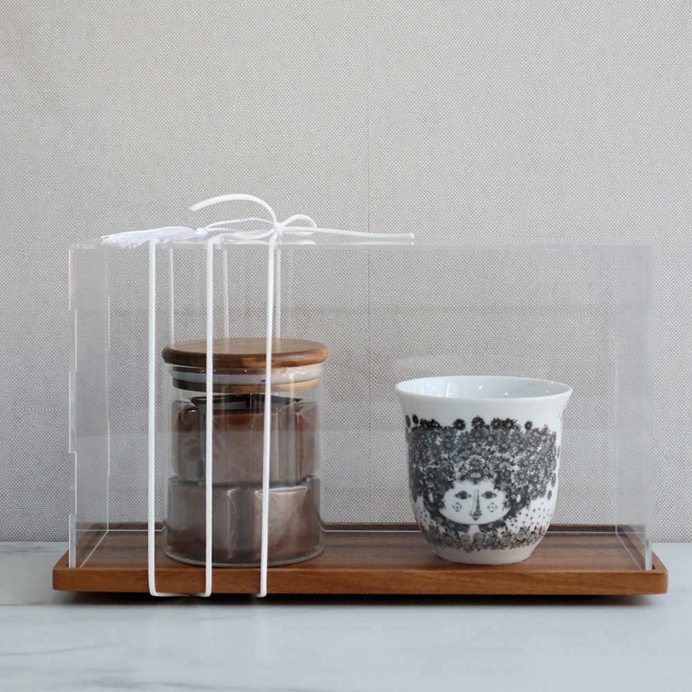 A beautiful blend of art and everyday comfort, this set features Bjørn Wiinblad’s signature artwork hand-applied onto porcelain, complemented by a jar of chocolates for a subtle touch of indulgence, perfect for your daily coffee or tea and designed to bring character and warmth to your quiet moments. Size: 8.5 × 9 cm (350 ml).