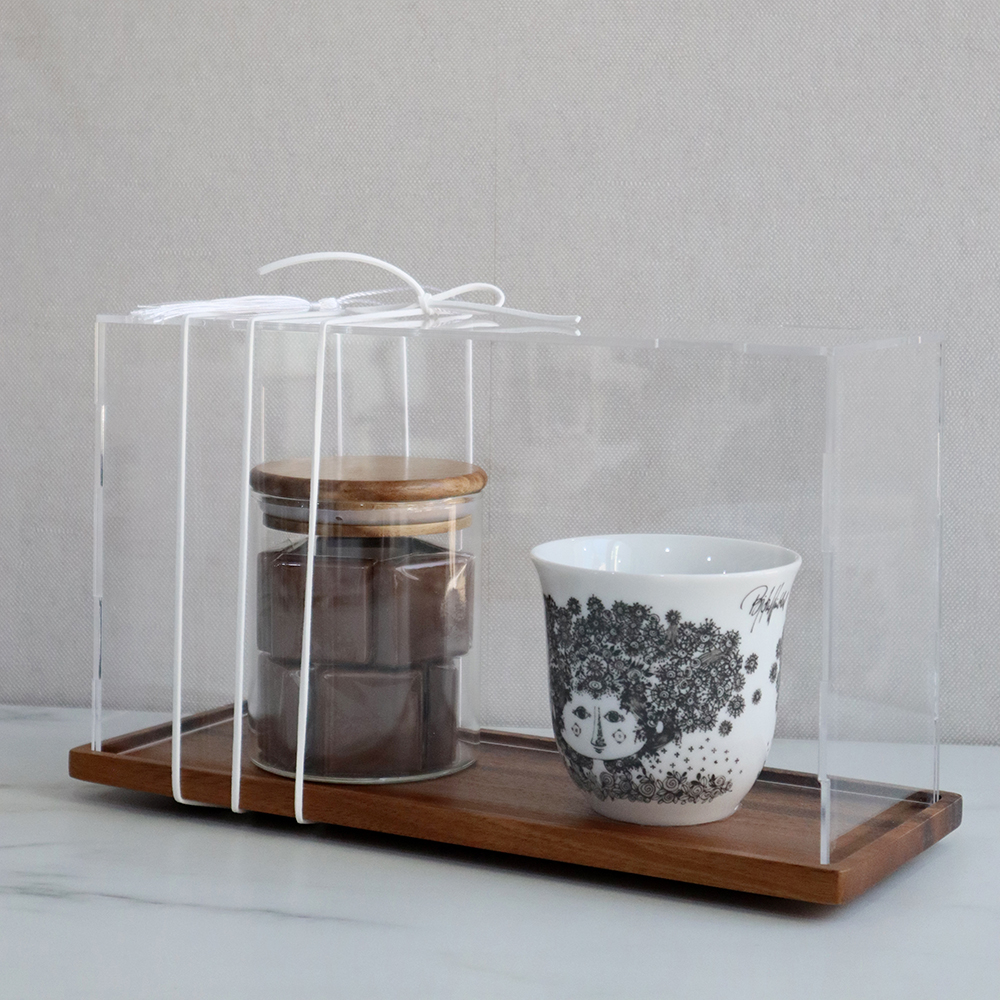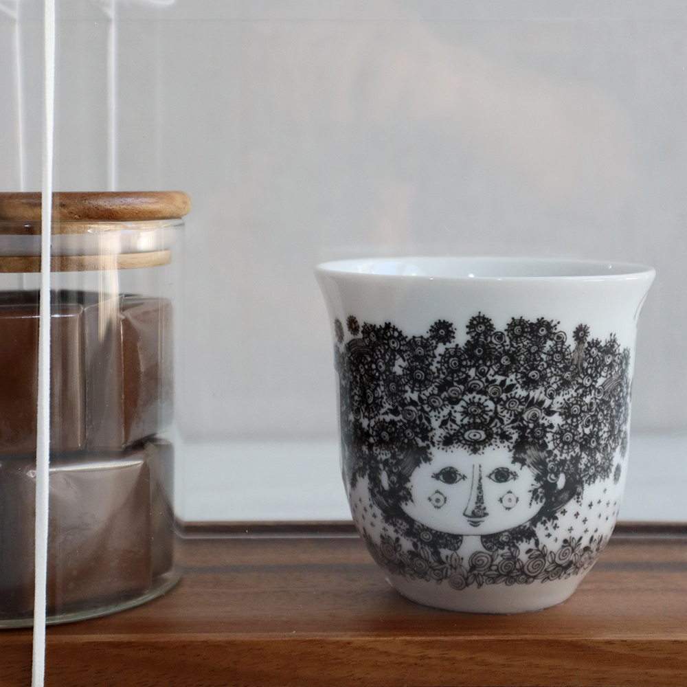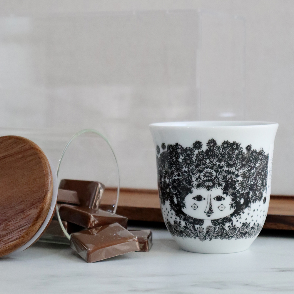 A charming set that blends art with everyday moments, the Felicia Porcelain Cup Set features Bjørn Wiinblad’s signature artwork hand-applied onto harmonious porcelain, complemented by a jar of chocolates for a subtle touch of indulgence, designed as a thermo cup to keep your drink warm while remaining comfortable to hold, perfect for coffee or tea. Size: 9.5 × 9 cm (250 ml).