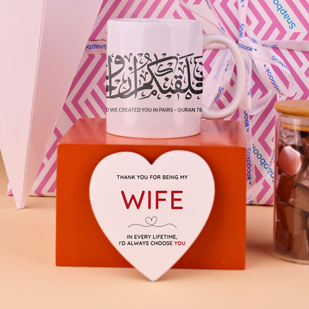 The Love Gift is a heartfelt bundle featuring a customizable mug, a jar of delicious chocolates, a heart-shaped coaster, and a beautiful rose bouquet, perfect for adding warmth and sweetness to any occasion. Whether for an anniversary or a special surprise, this thoughtful set is a simple yet meaningful way to show love.