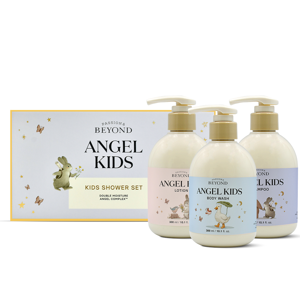 A set of beyond angel kids shower special of shampoo, body wash and lotion.