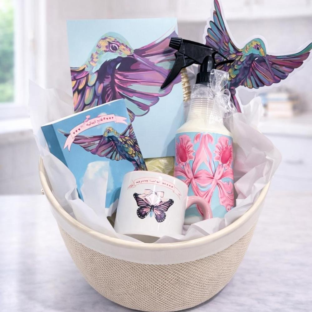 A special gift basket for Mothers Day featuring our new customized mini box filled with bhokor and matching mini cup Plus 450ml home fragrance our special notebook and beautiful bird card Perfect for showing mom how much you care.