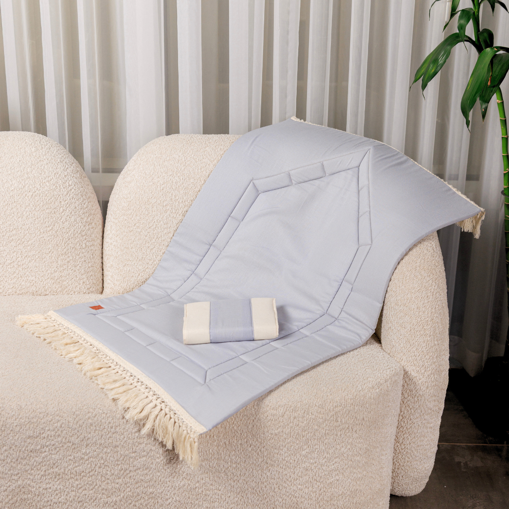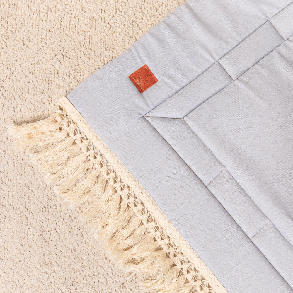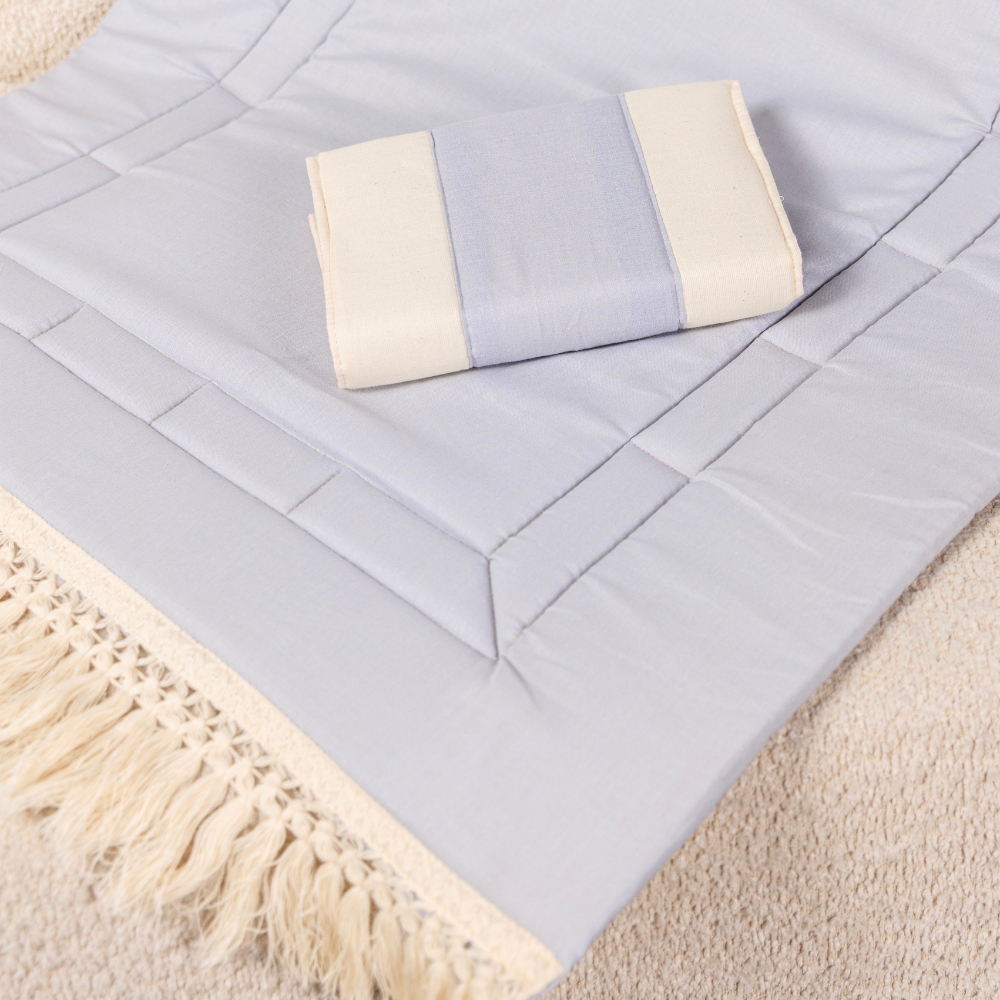 A praying set includes a hand made praying mat made with a luxurious fabric filled with plush sponge that provides softness and support during your prayers, with a silk praying dress and Quran with cover.