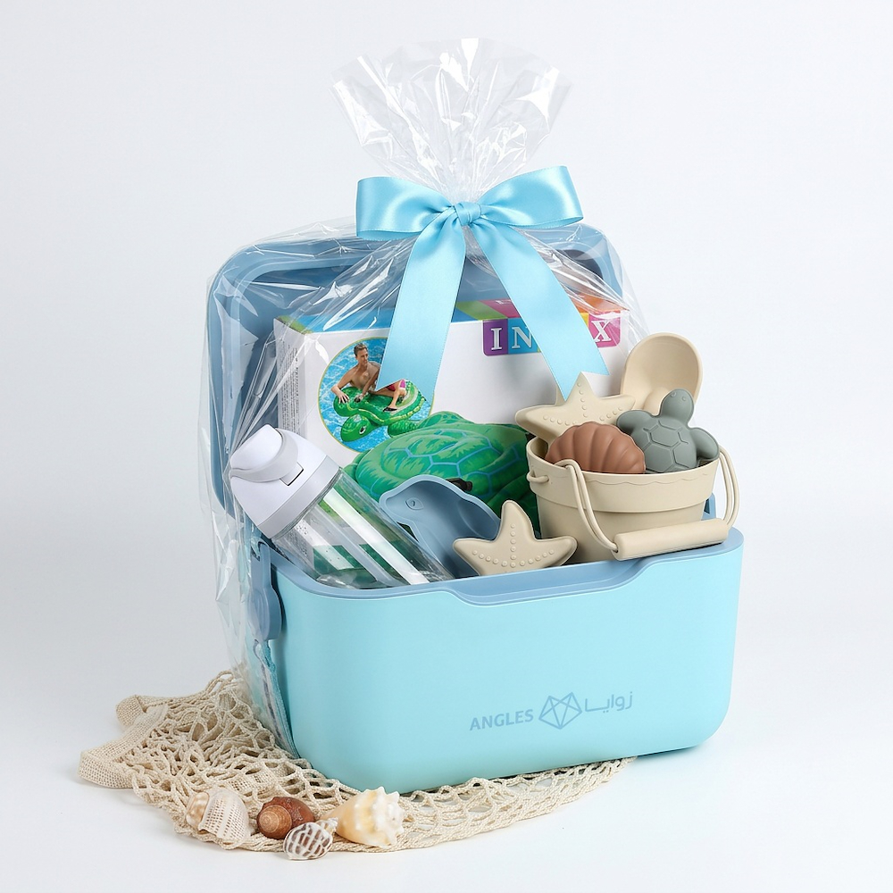 A fun and practical summer gift set, perfect for beach days, pool outings, and outdoor adventures. Presented in a thermal cooler box to keep drinks and essentials fresh, this set includes a selection of kids’ beach and play items for a complete summer experience. Elegantly wrapped in clear cellophane with a ribbon, it’s ready to gift. Includes: - Thermal ice box (cooler). - Silicone beach toys for kids. - Inflatable swim float. - Water bottle. Features: - Ideal for outdoor and beach activities. - Safe and kid-friendly materials. - Keeps contents cool for longer. - Ready-to-gift packaging.