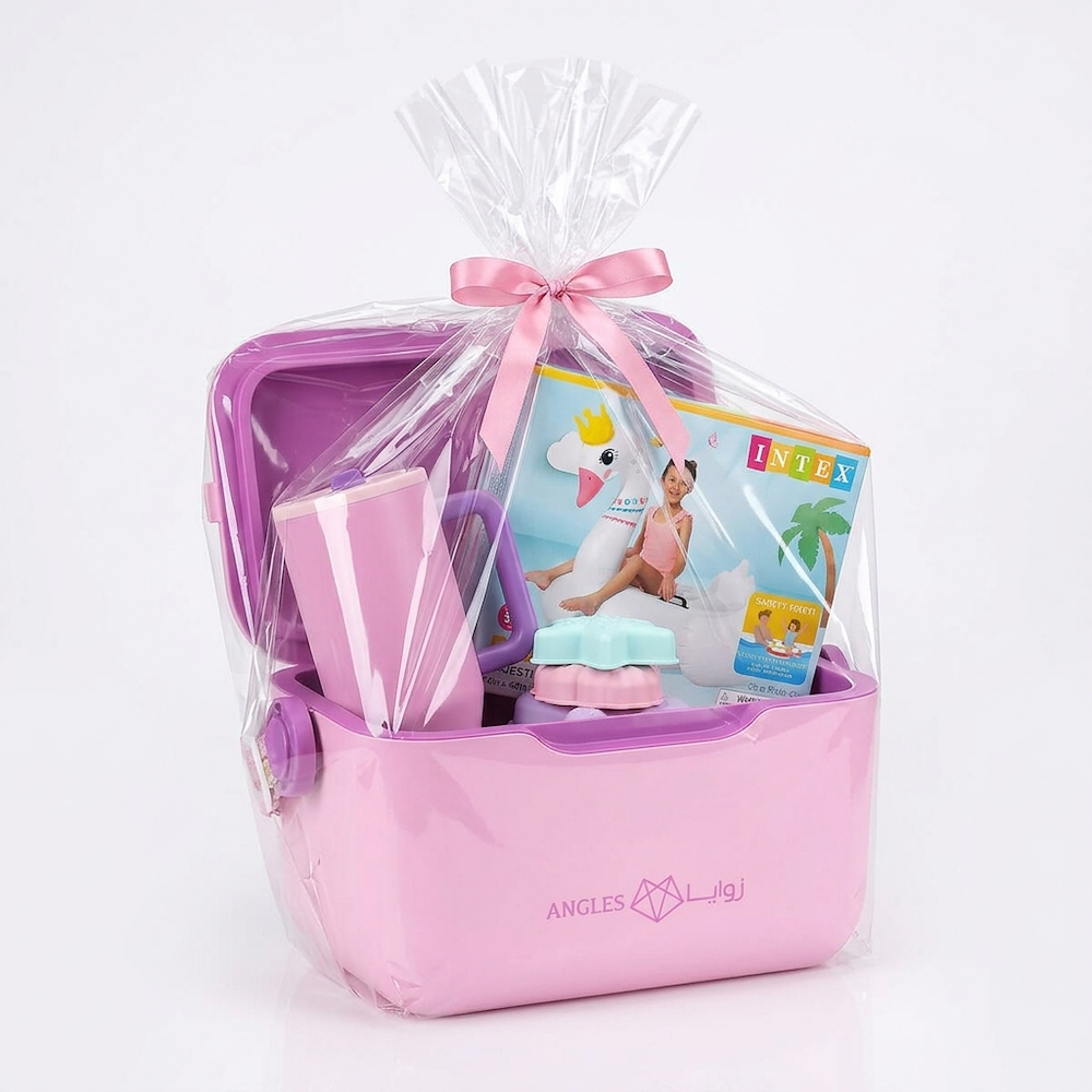 A fun and practical summer gift set, perfect for beach days, pool outings, and outdoor adventures. Presented in a thermal cooler box to keep drinks and essentials fresh, this set includes a selection of kids’ beach and play items for a complete summer experience. Elegantly wrapped in clear cellophane with a ribbon, it’s ready to gift. Includes: - Thermal ice box (cooler). - Silicone beach toys for kids. - Inflatable swim float. - Water bottle. Features: - Ideal for outdoor and beach activities. - Safe and kid-friendly materials. - Keeps contents cool for longer. - Ready-to-gift packaging.