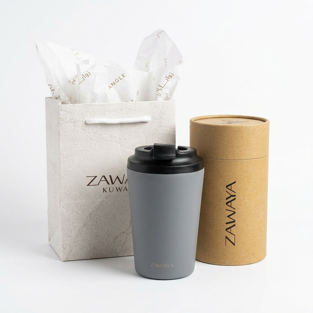 A thermal double-wall stainless-steel tumbler in 360ml, with customized printed name, keeps beverages hot or cold for 6 to 12 hours with secure, spill-resistant lid and it's lightweight with 205 grams.