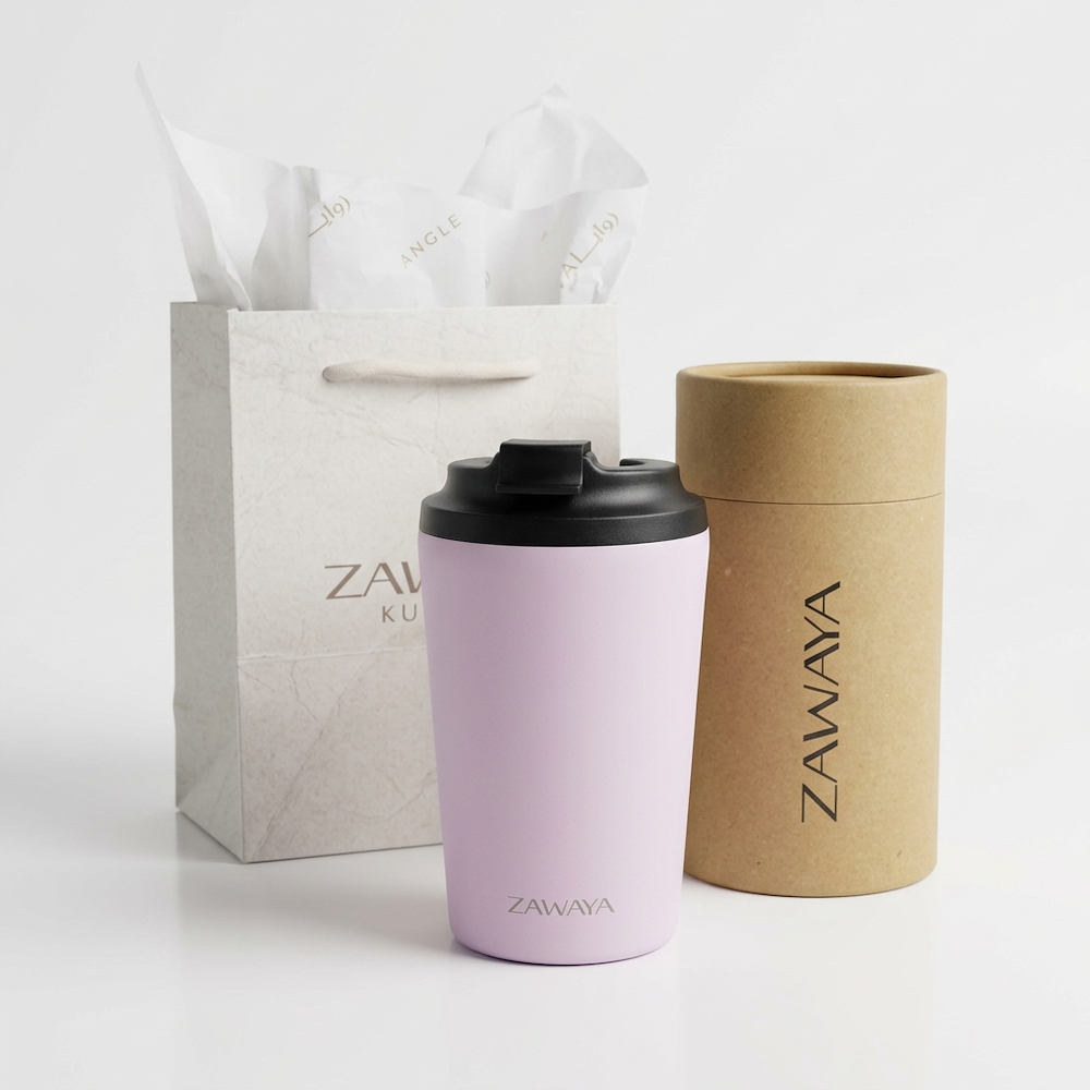 A thermal double-wall stainless-steel tumbler in 360ml, with customized printed name, keeps beverages hot or cold for 6 to 12 hours with secure, spill-resistant lid and it's lightweight with 205 grams.