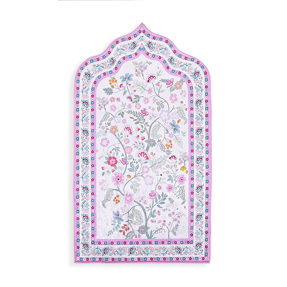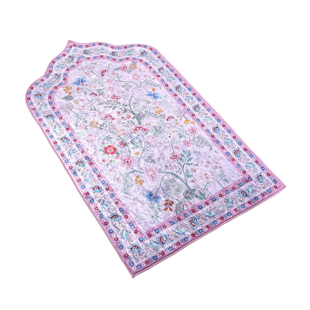 Ice velvet prayer rug with foam cushioning for comfort and a non-slip base for stability, made in Turkey.