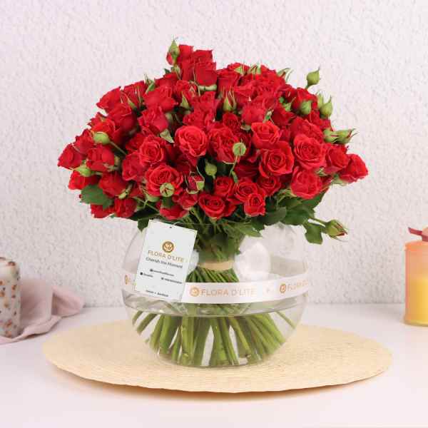 Romance blooms in this fresh-as-ever arrangement of charming red roses, for a token of love that is as beautiful as the delicate desire of a blooming romance.