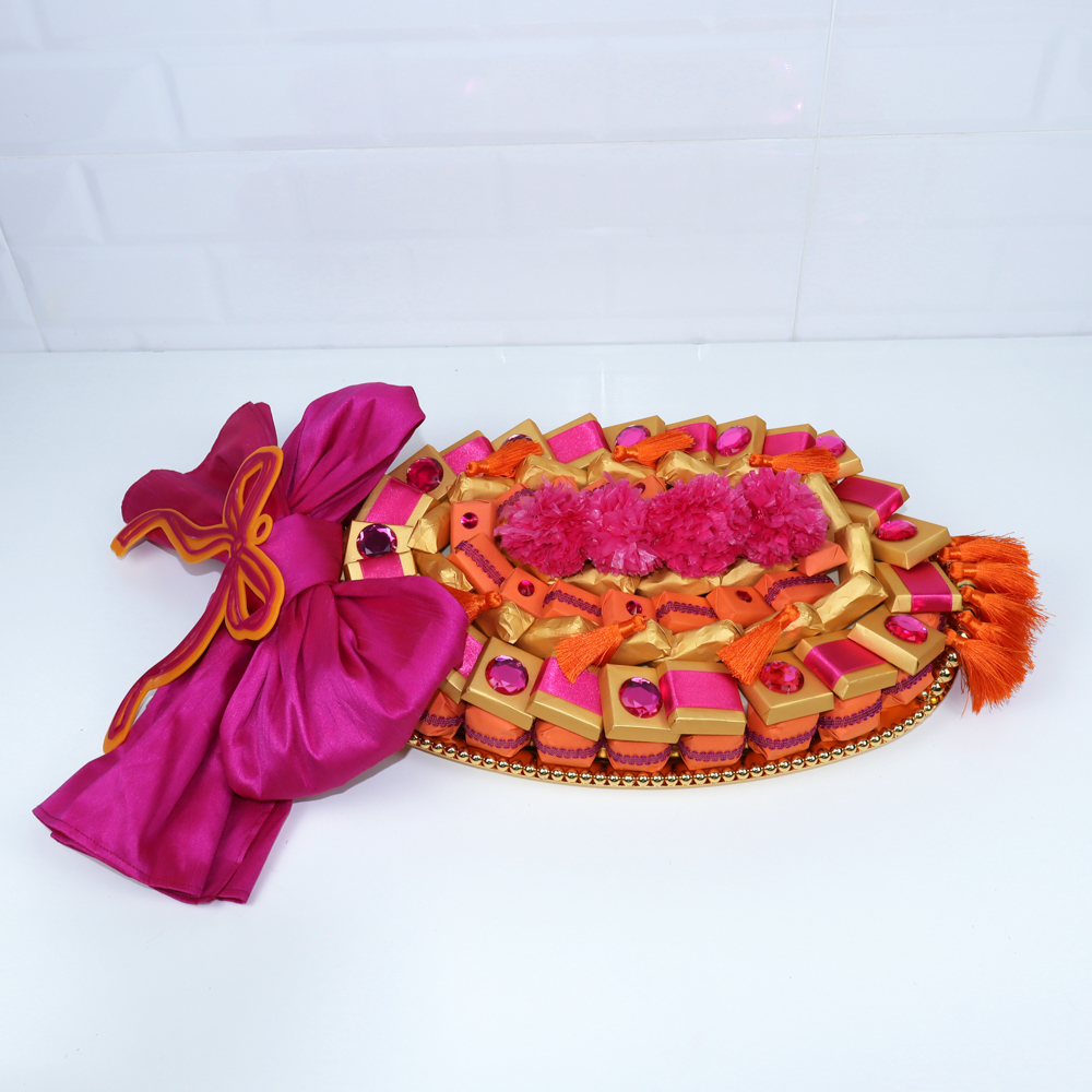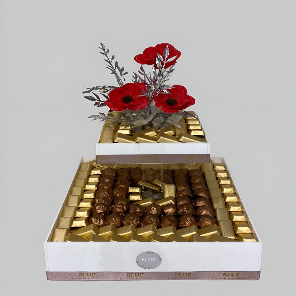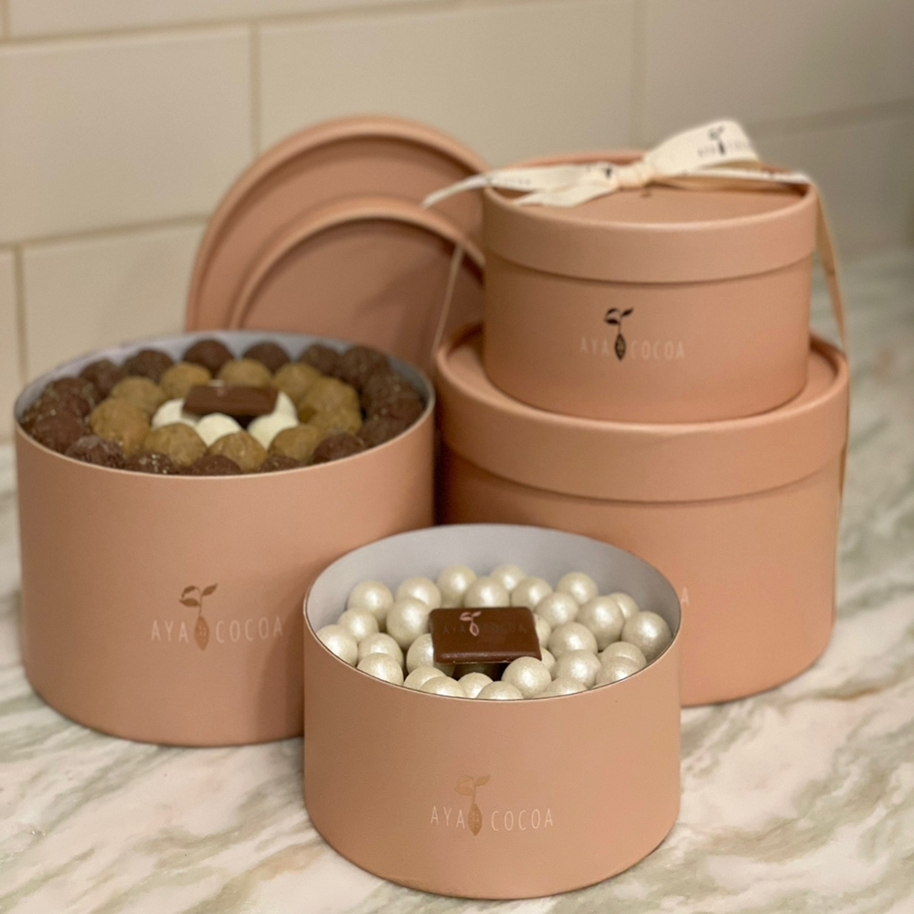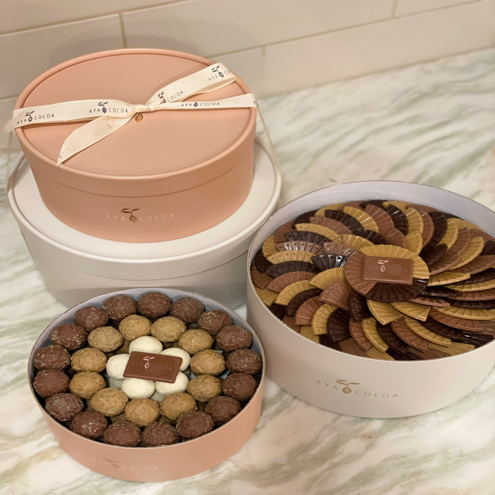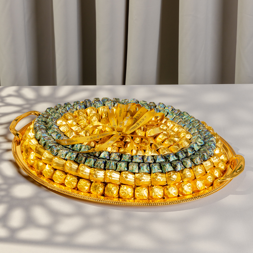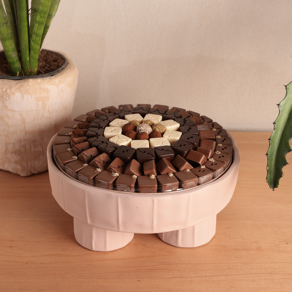 A set contains 450 grams fan chocolates, 860 grams of mixed truffles and 500 grams of dragees.