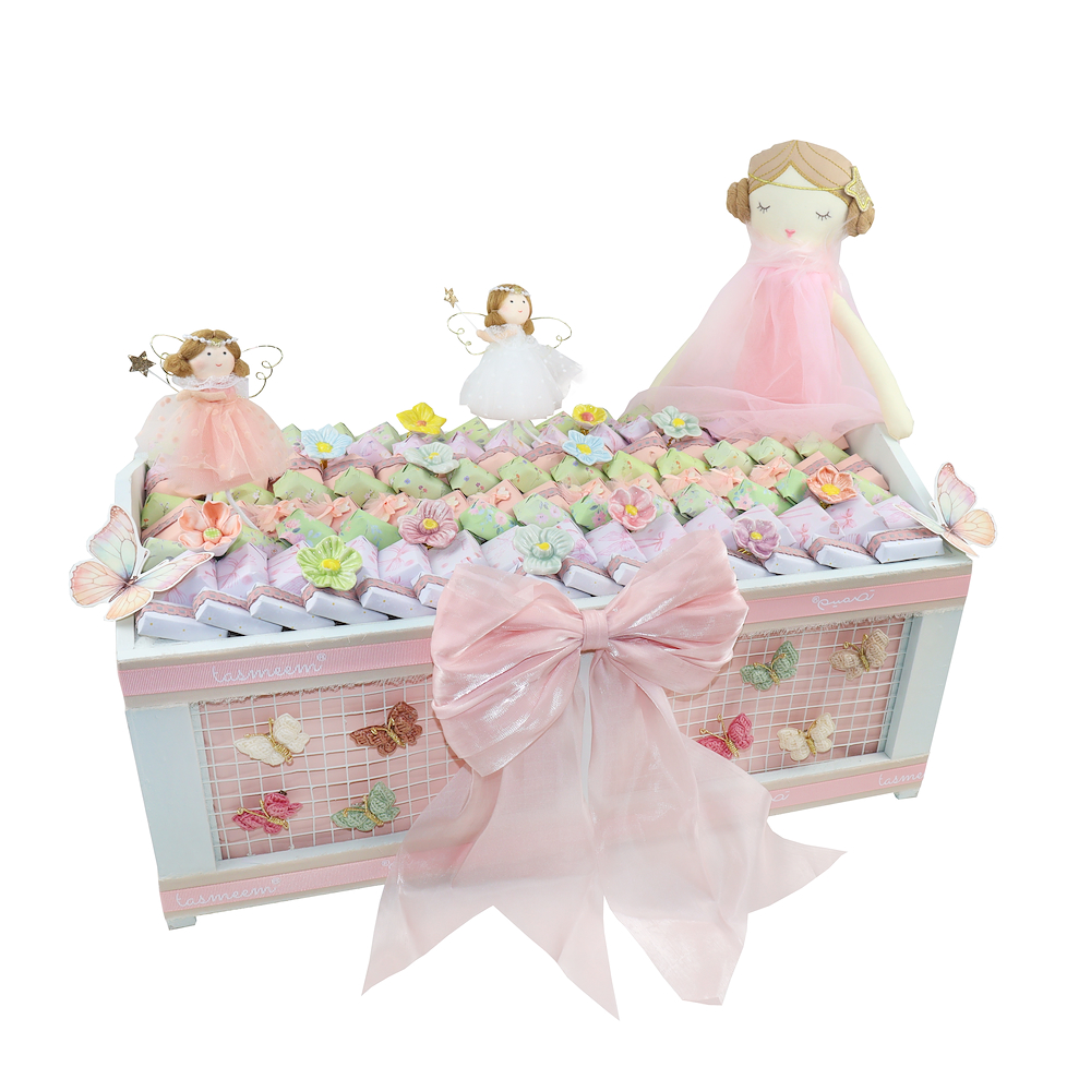 A 2.3 KG wrapped chocolate arrangement adorned with charming dolls and delicate accessories.