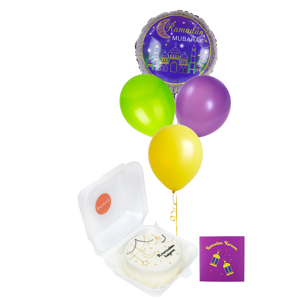 Festive Ramadan cookie decorating kit with balloons, sprinkles, icing, and themed cookies for creative family fun.