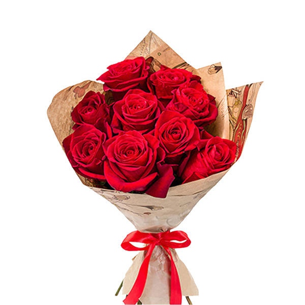 Bouquet of rose flowers Made up of 9 Red Rose flowers Covered with newspaper, elegant and simple packaging.