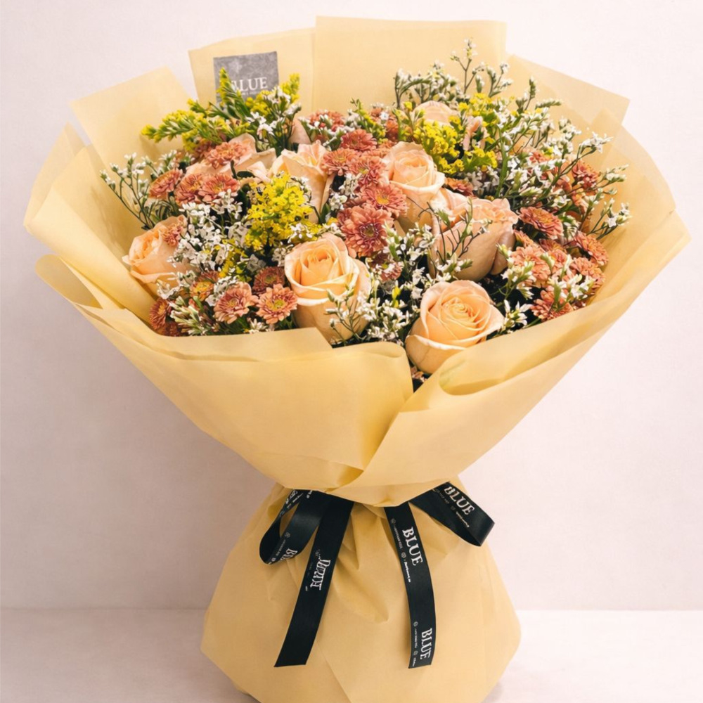 A bouquet featuring roses and chrysanthemums.