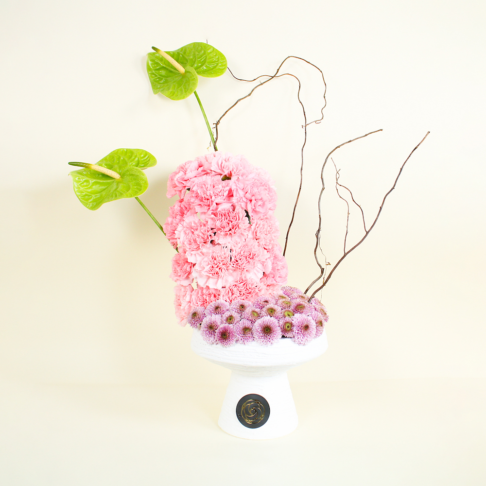 A bouquet that contains rose, eustoma, and phalaenopsis flowers with eucalyptus.