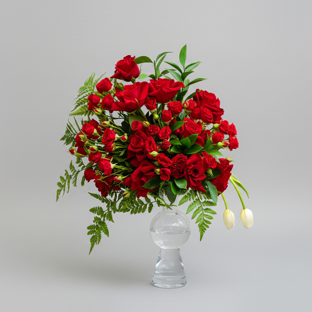 Tulips, roses, gerberas, and chrysanthemums, arranged beautifully in a tray. This lovely pink-themed mix is perfect to celebrate the joy and arrival of a precious baby girl.