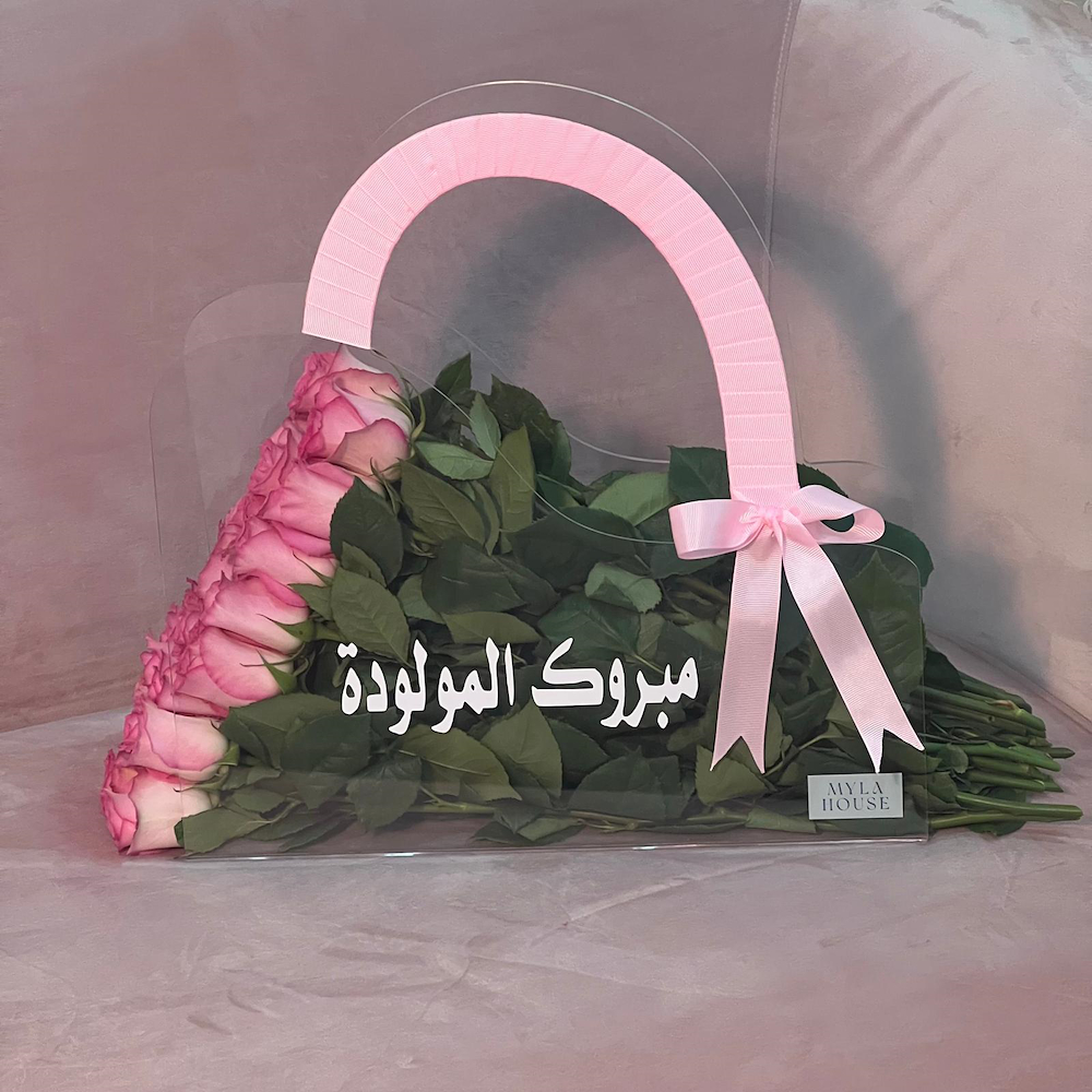 A stylish clear bag of soft pink roses with a matching ribbon, an arrangement that radiates simplicity and elegance.