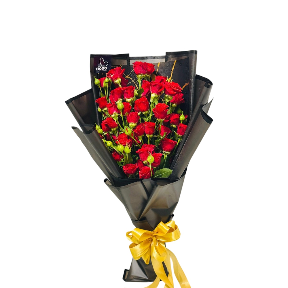 A bouquet featuring baby roses with a special wrapping.
