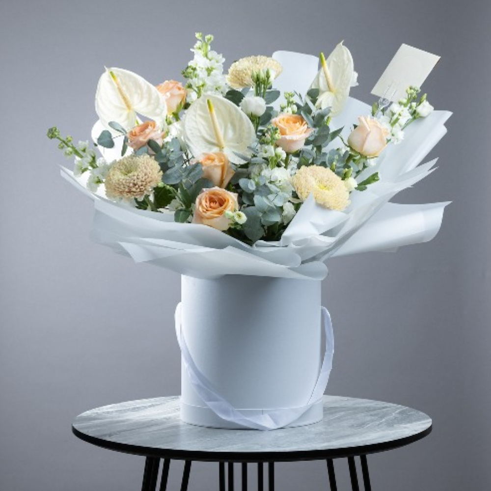 A charming hand-tied bouquet featuring pink roses accented with delicate fillers and lush greenery, wrapped in soft shades of pink for an elegant and romantic finish. Perfect for birthdays, anniversaries, or sending a sweet gesture of love and appreciation.