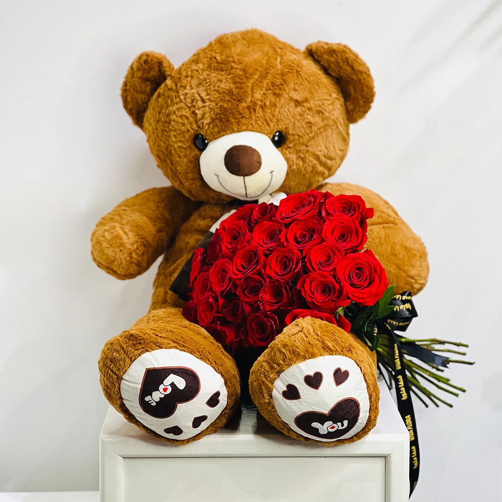 Romance is timeless with the heart-shaping red and white roses in our box.