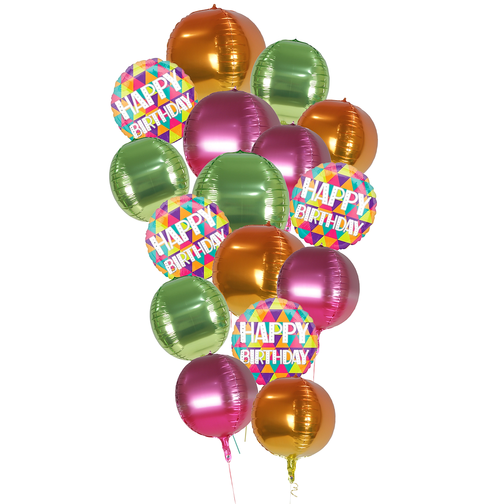 A bouquet of foil and latex balloon filled with helium gas.