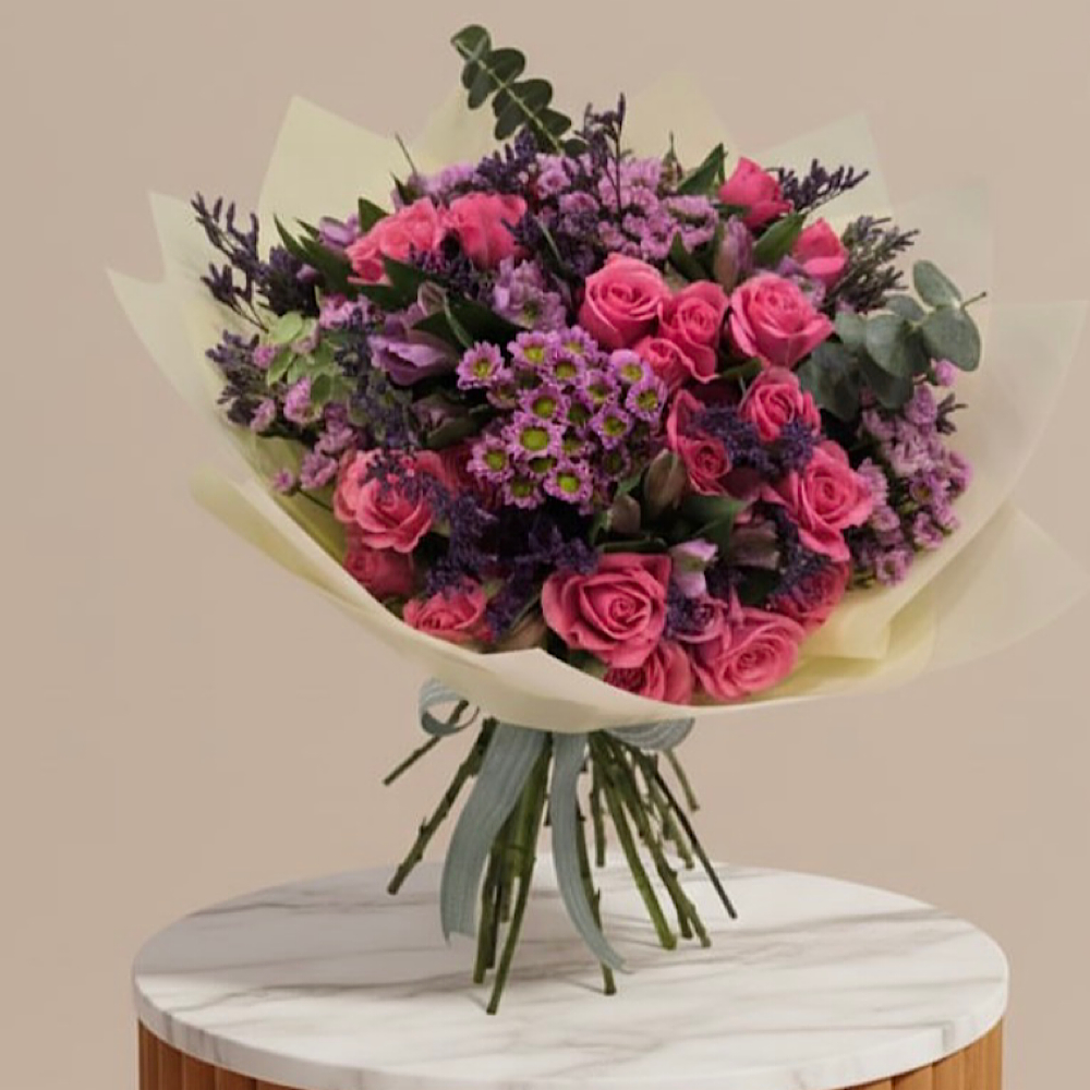 A carefully coordinated bouquet of roses and chrysanthemums that combines the various colors of roses to give an aesthetic touch to the place and spread the fragrance throughout the house.