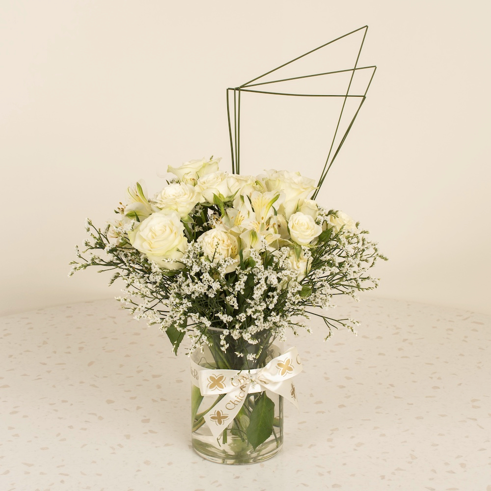 A medium vase filled with an elegant set of white roses, offering a simple yet luxurious touch of purity and elegance.