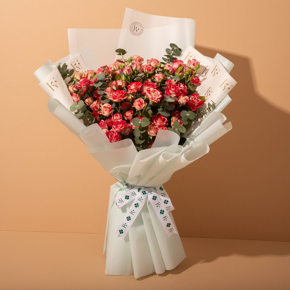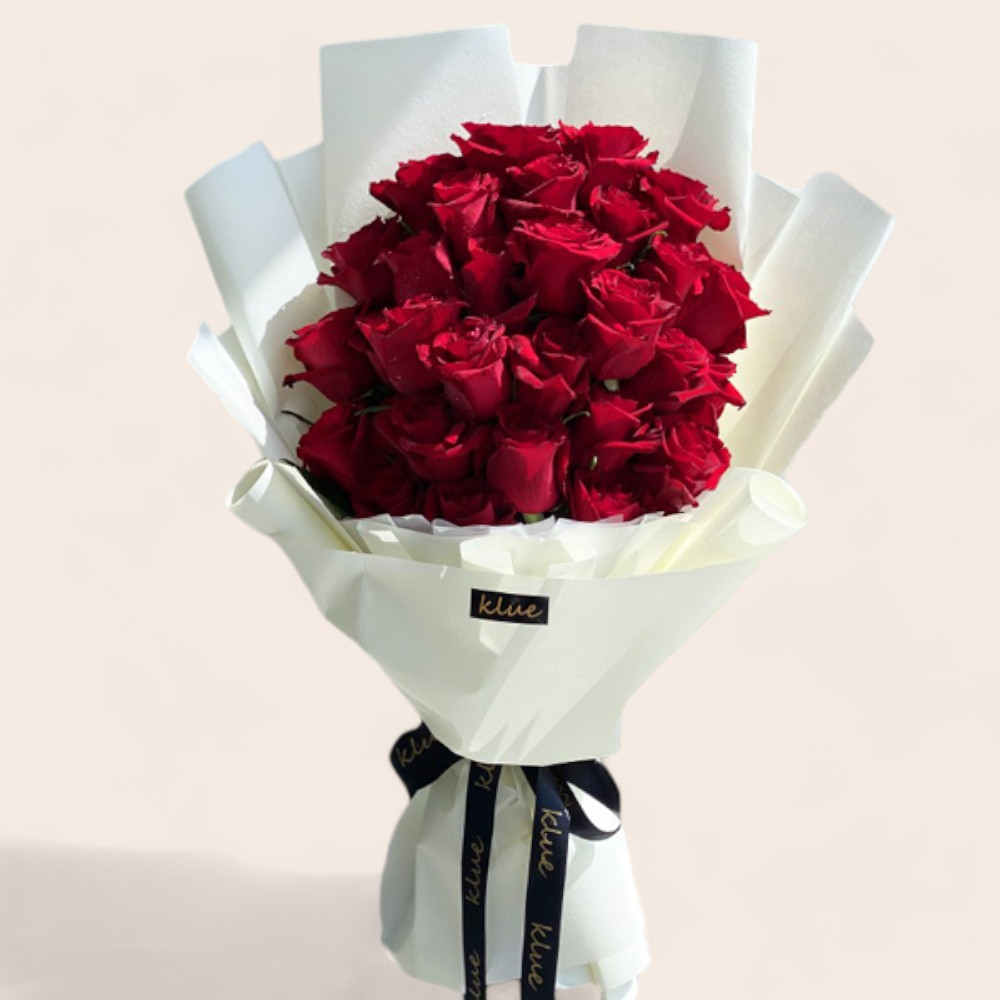 A hand bouquet that contains Dutch and Kenyan roses with orchid flowers, coordinated in a distinctive and luxurious way.