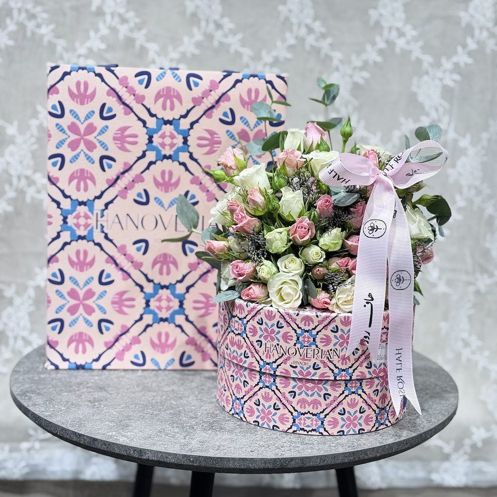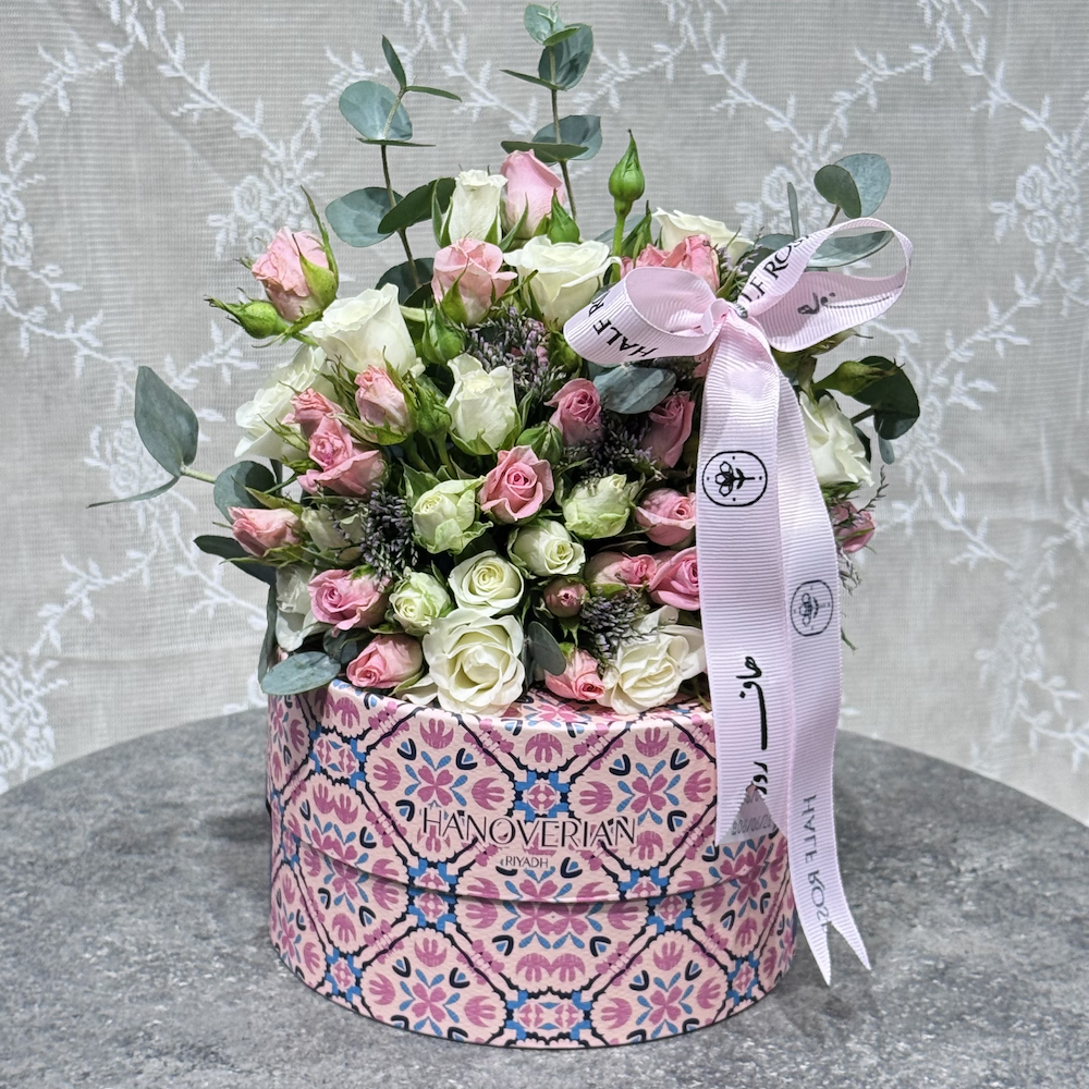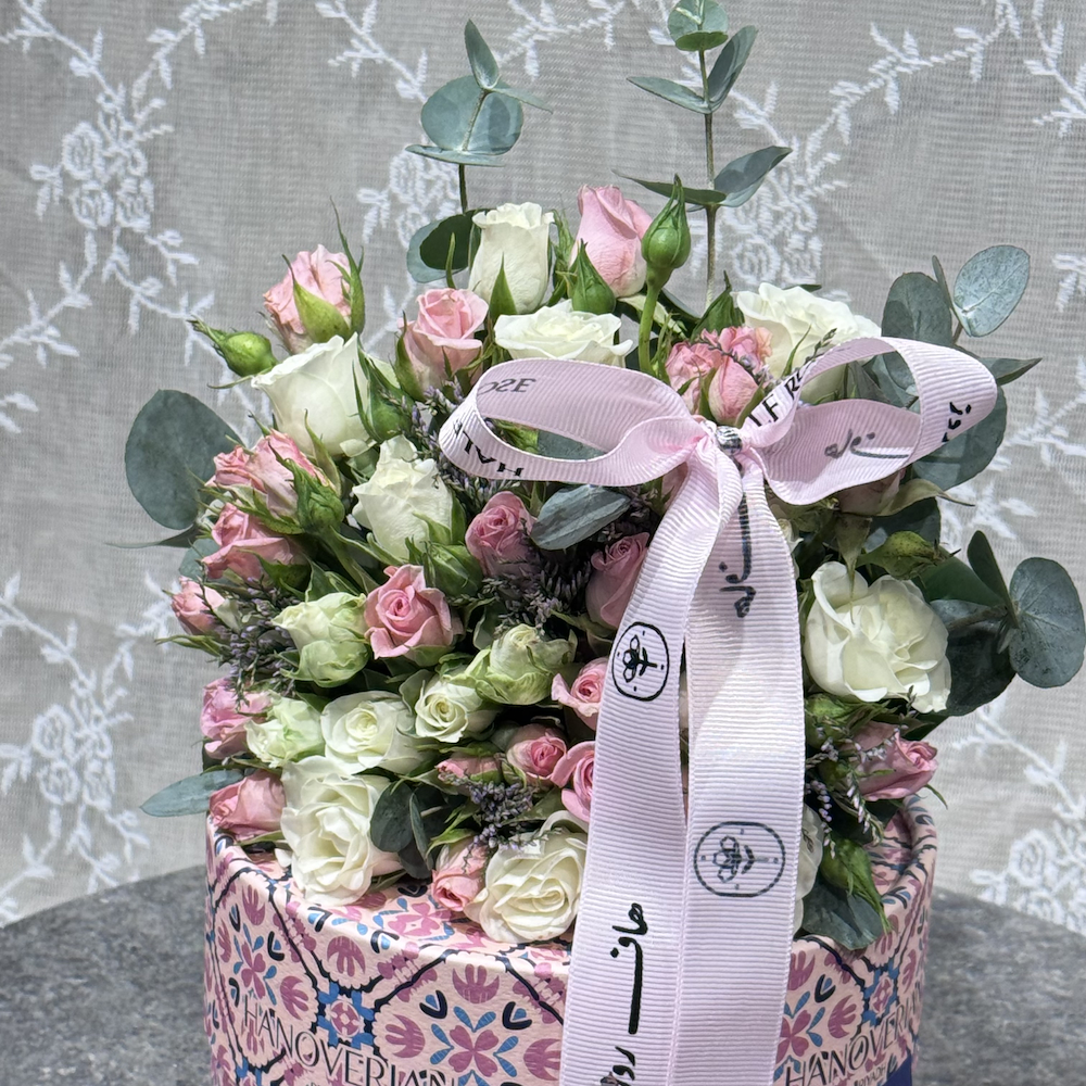 A box that contains roses along with Hanoverian chocolates.