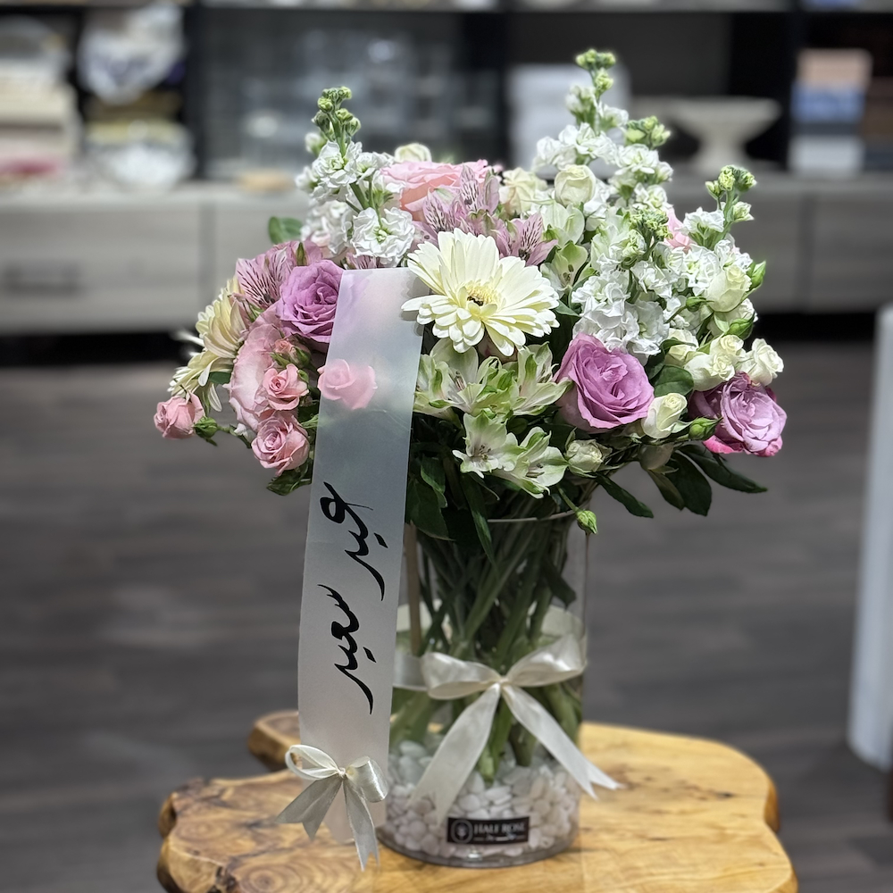 A bouquet of mixed colored roses.