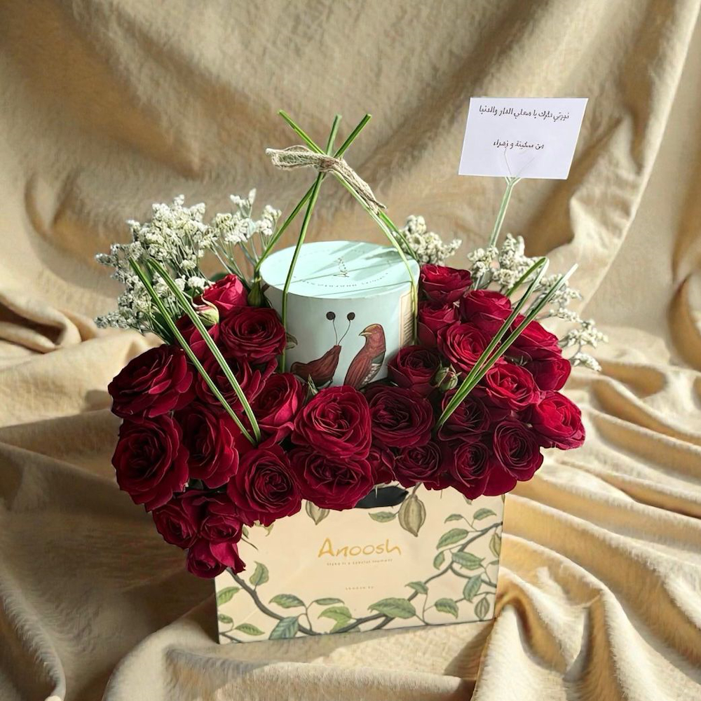 Anoush luxury chocolates with a beautiful arrangement of red roses. We guarantee exceptional quality with free and fast same-day delivery. The perfect choice for every happy occasion.