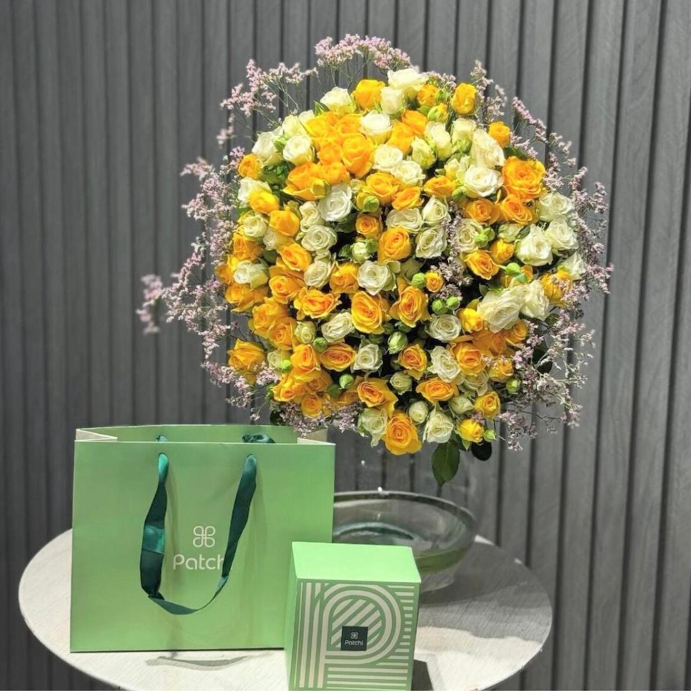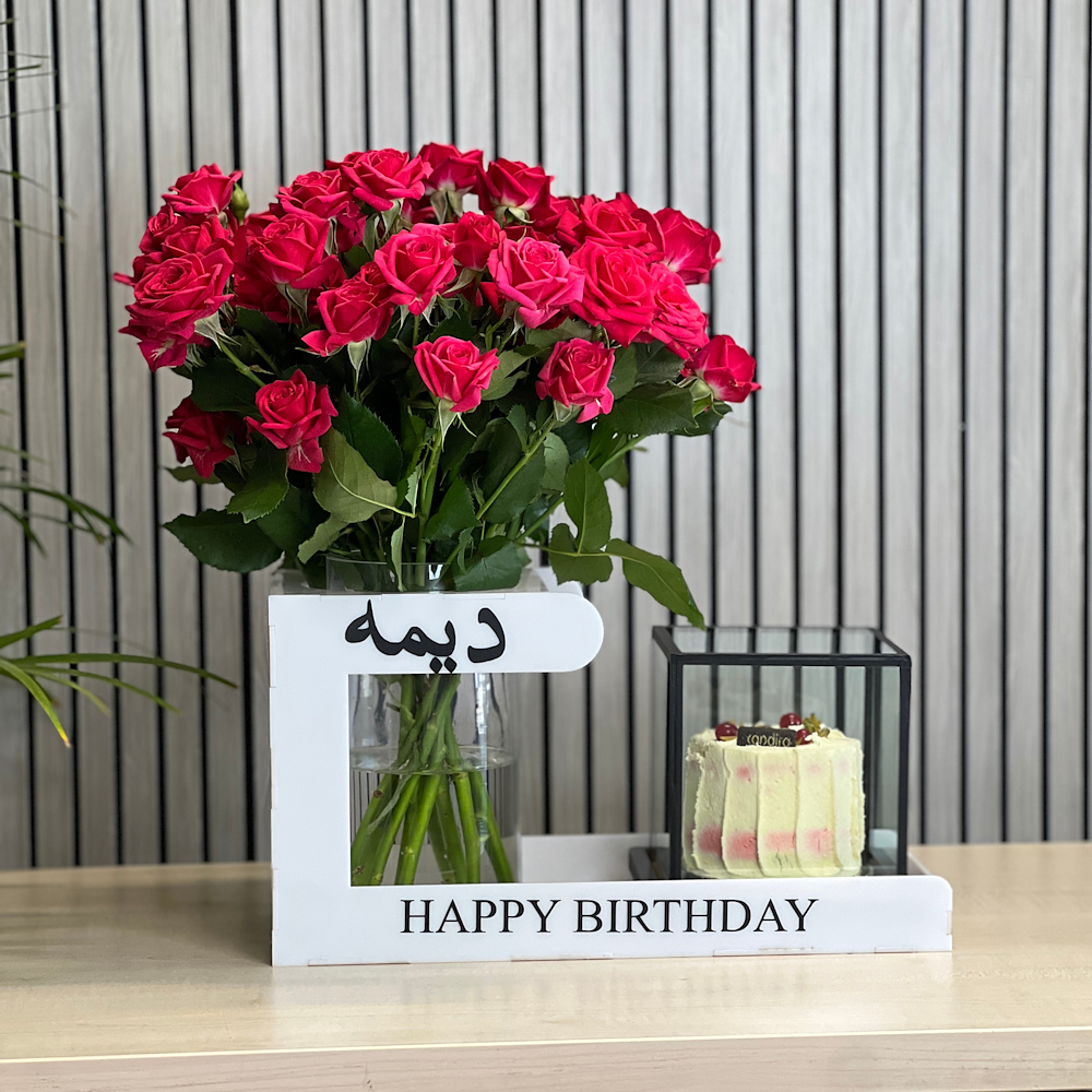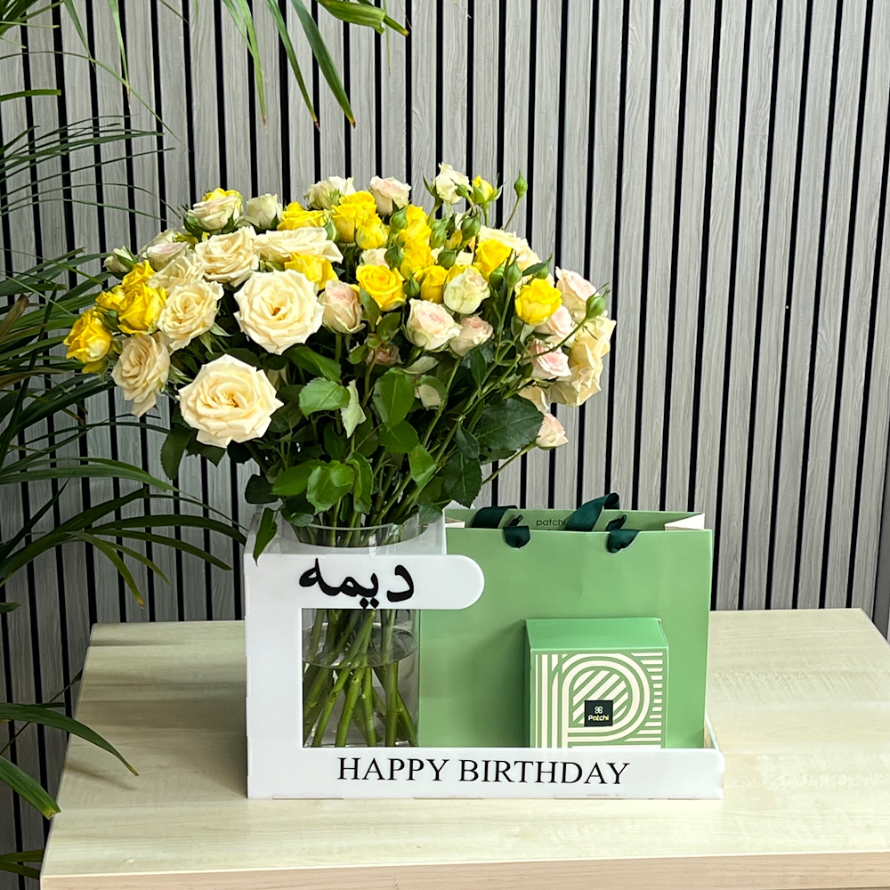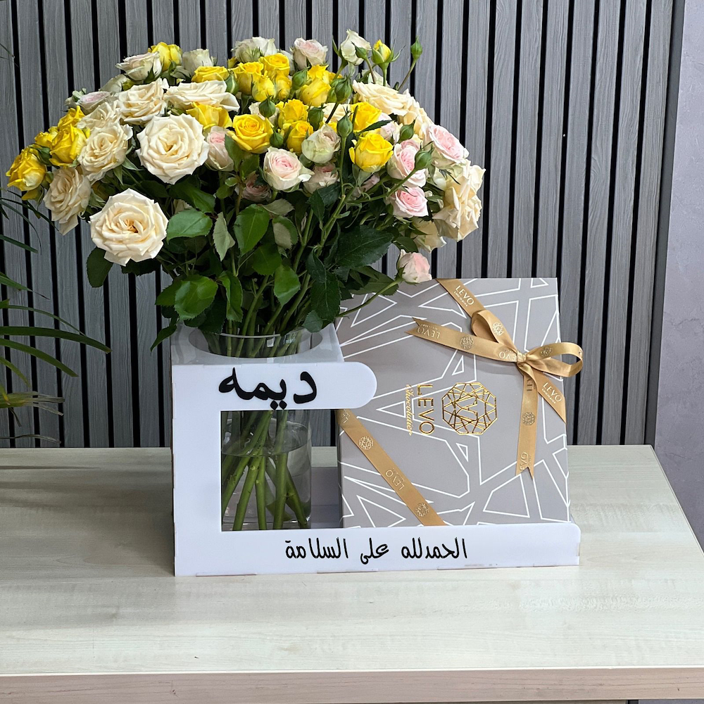 A multi-colored flower vase, combining delicacy and elegance with beautiful roses and baby roses. An ideal gift for friends and loved ones on special occasions and others.