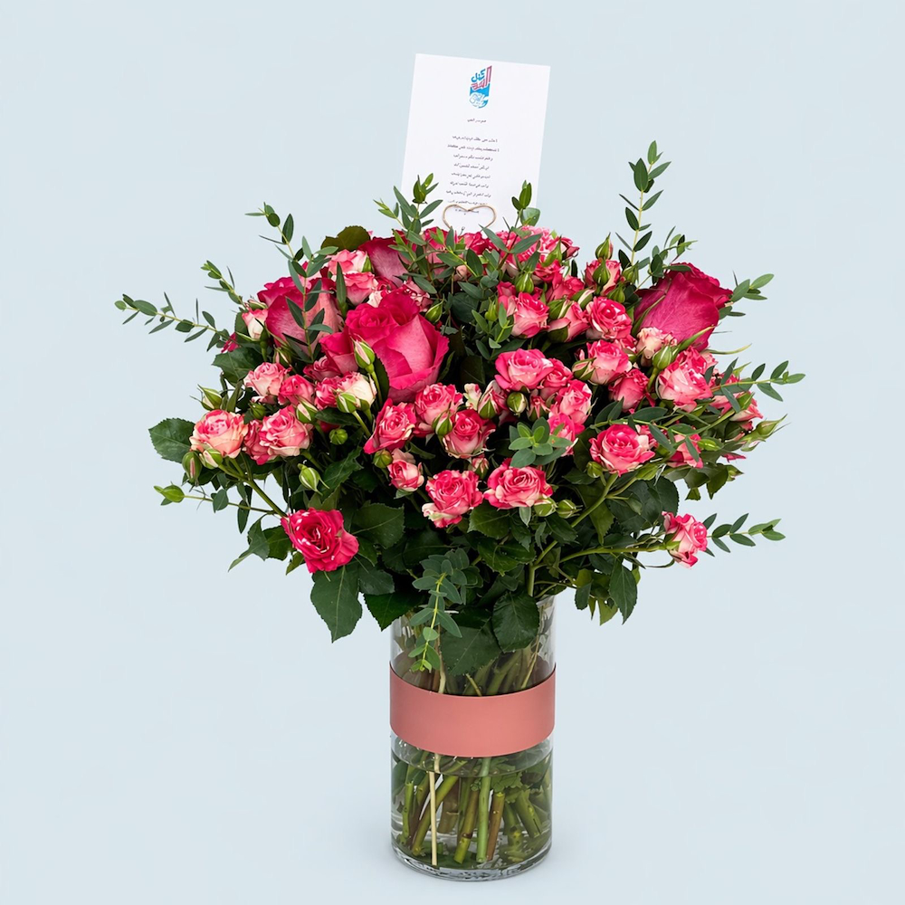 A luxurious arrangement of fresh pink roses with an elegant and vibrant touch, combining delicacy and luxury in a sophisticated glass vase. A perfect gift to express love and care in a refined style that leaves a lasting impression on every occasion.