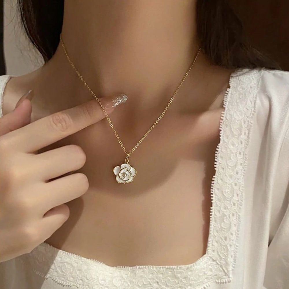 A hand bouquet featuring roses flowers with a gold plated necklace from Le Rose.
