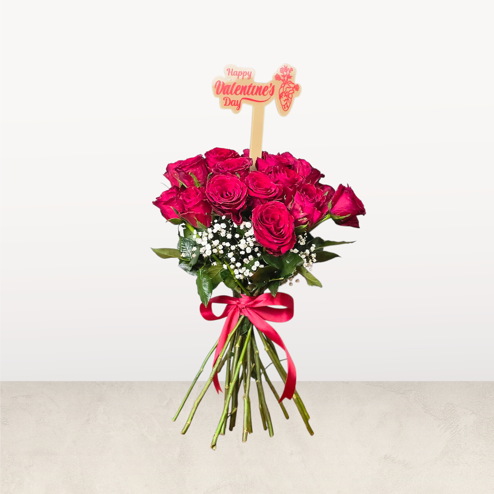 An elegant bouquet featuring red roses and gypsophila flowers, a simple yet impactful arrangement to express love in the best way.
