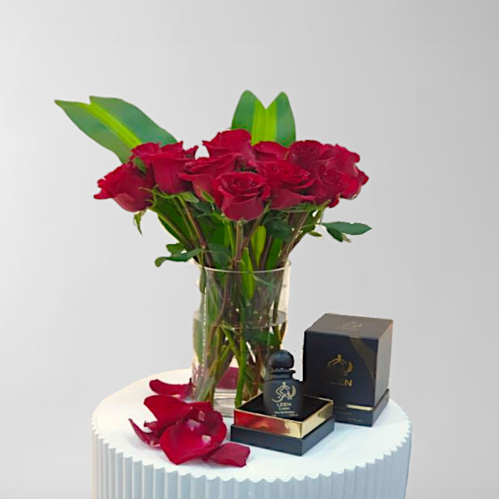A bouquet filled with roses with Leen perfume.