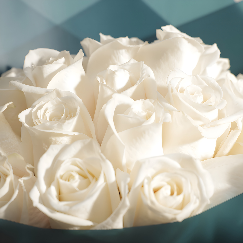 A hand bouquet arranged with 12 white roses.