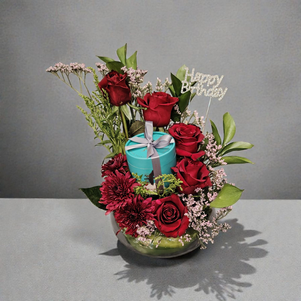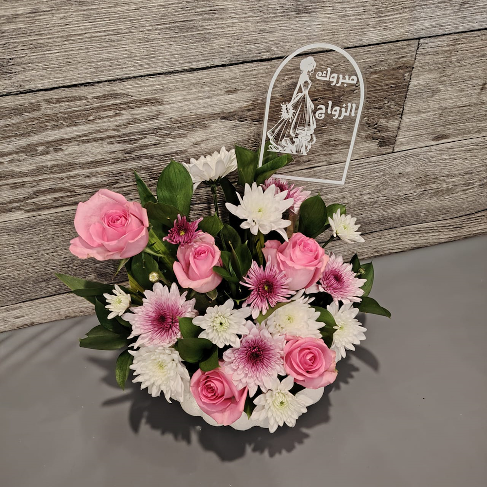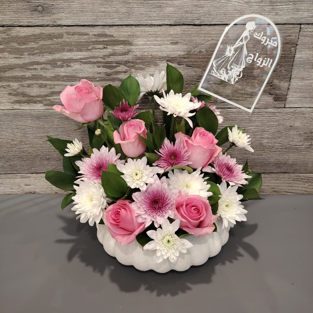 The vase for new beginnings, featuring pink roses and white chrysanthemums, gives you a feeling of optimism about life.