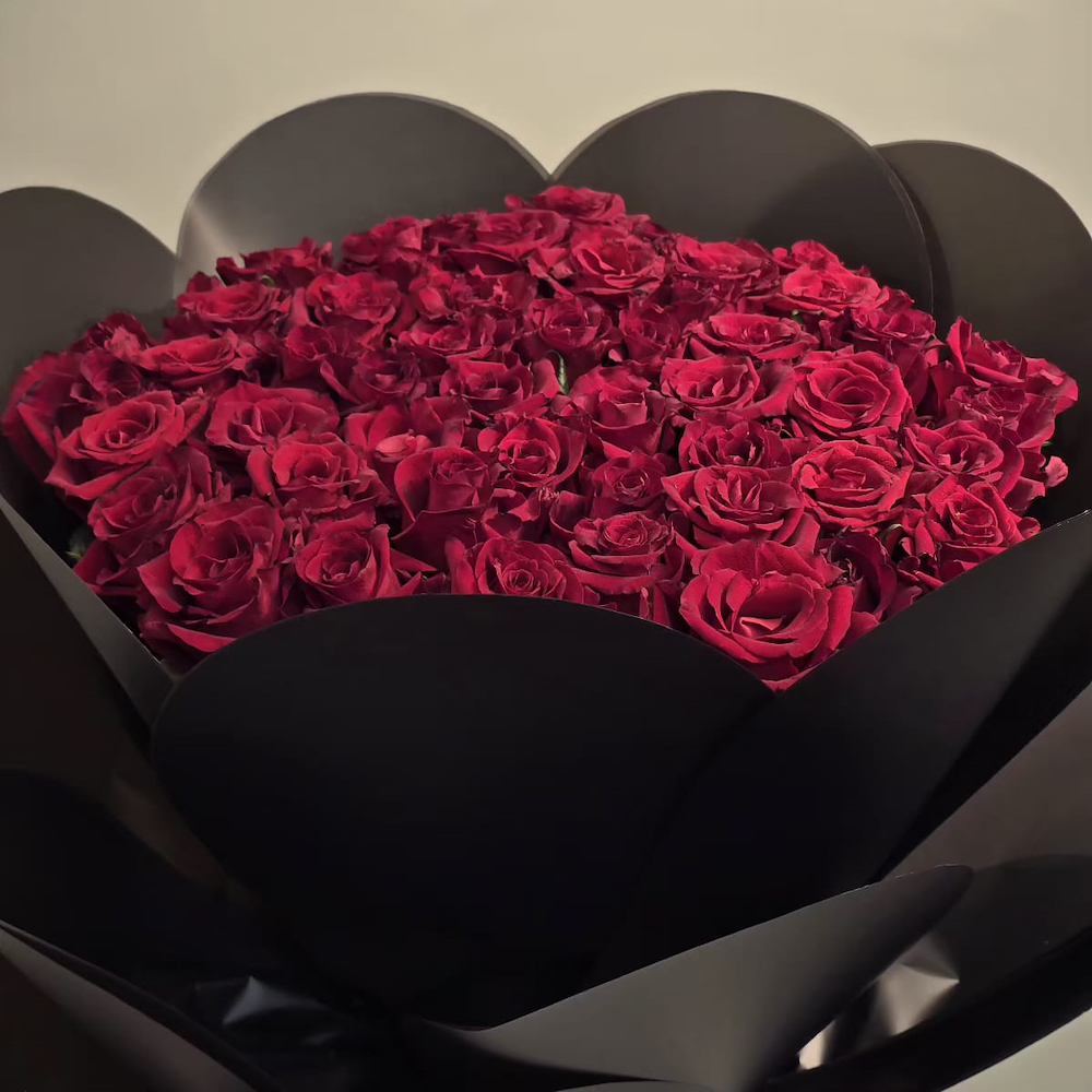 Red roses affection package, consists of 50 rosea in an elegant black wrapping.